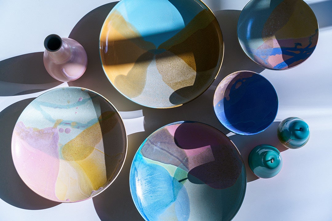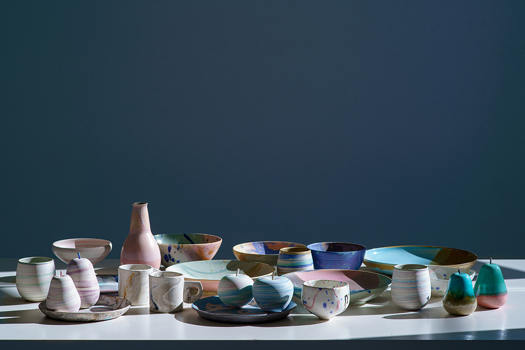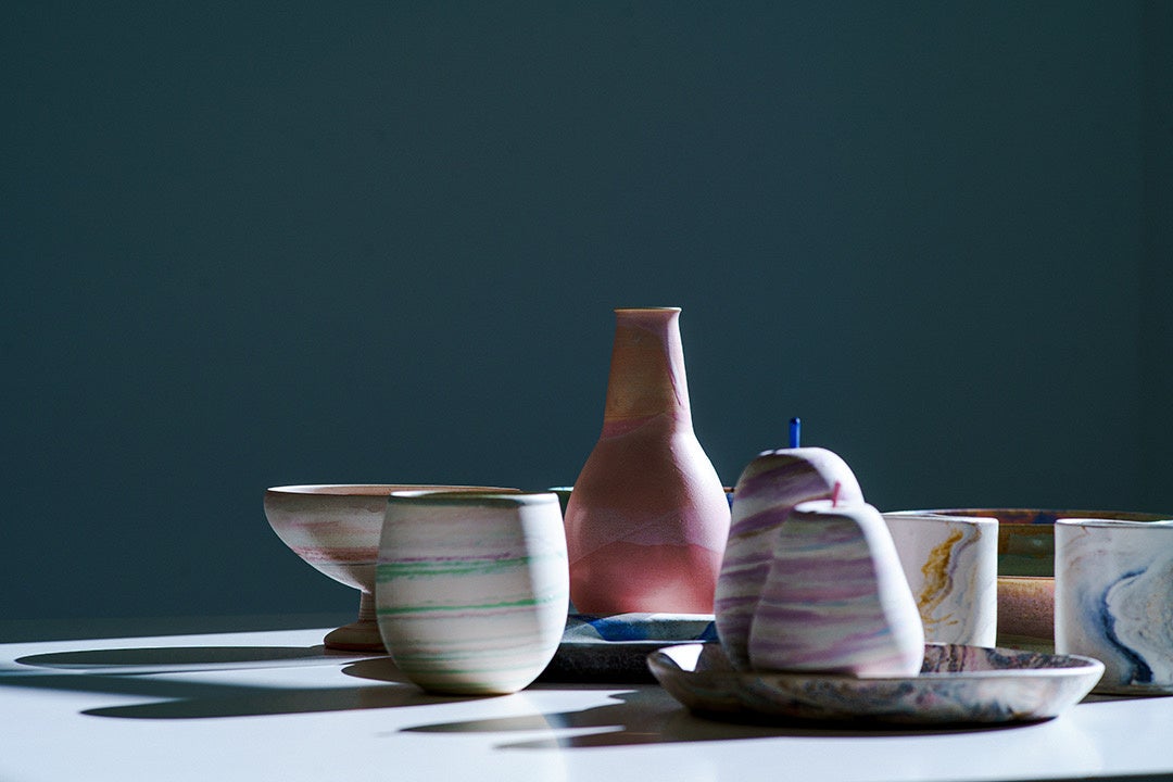 今回は食卓を彩る大小の器をはじめ、マグカップやオブジェ、フラワーベースなど竹村氏のコレクションを数量限定で販売。