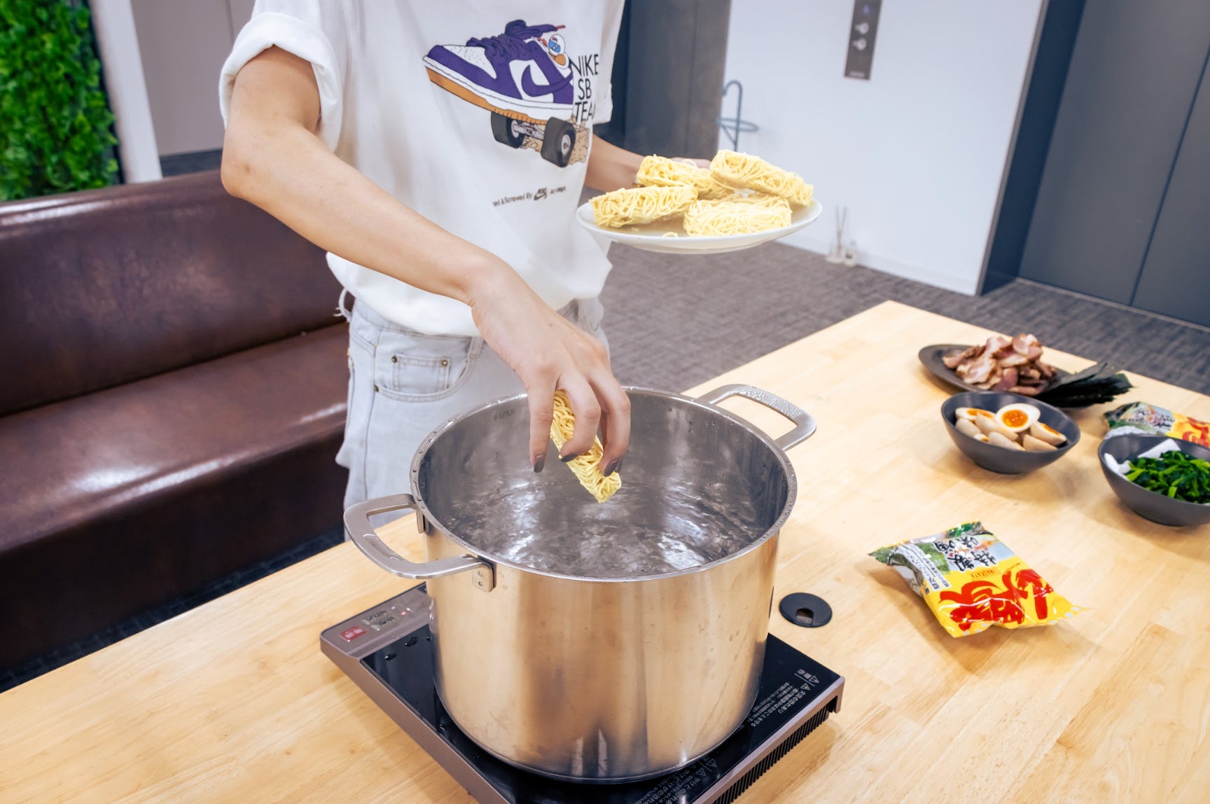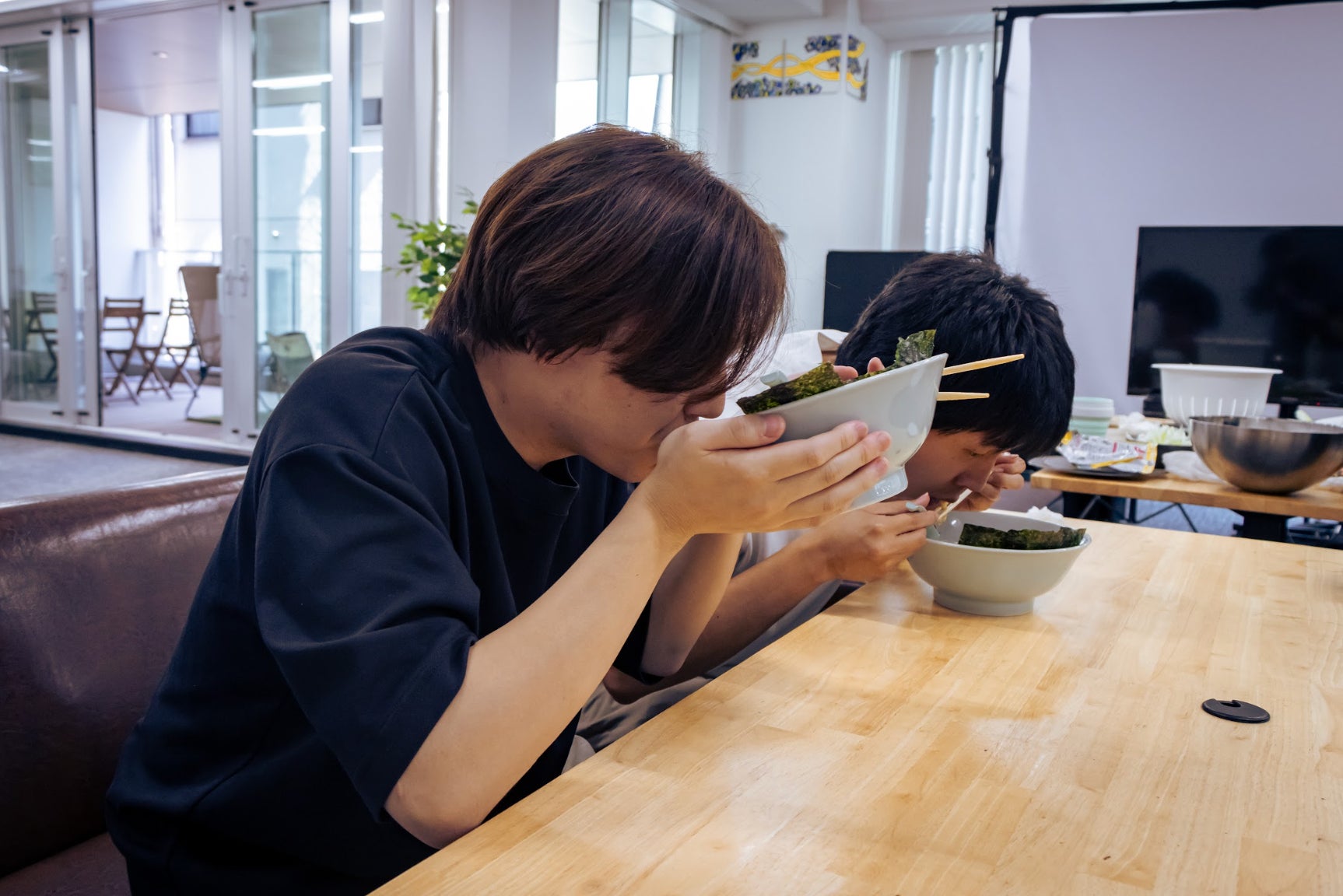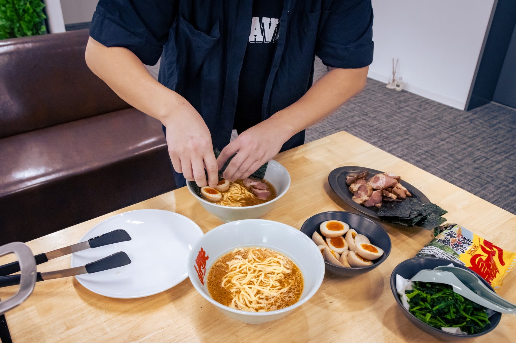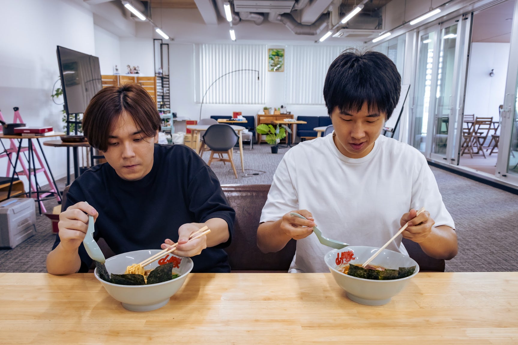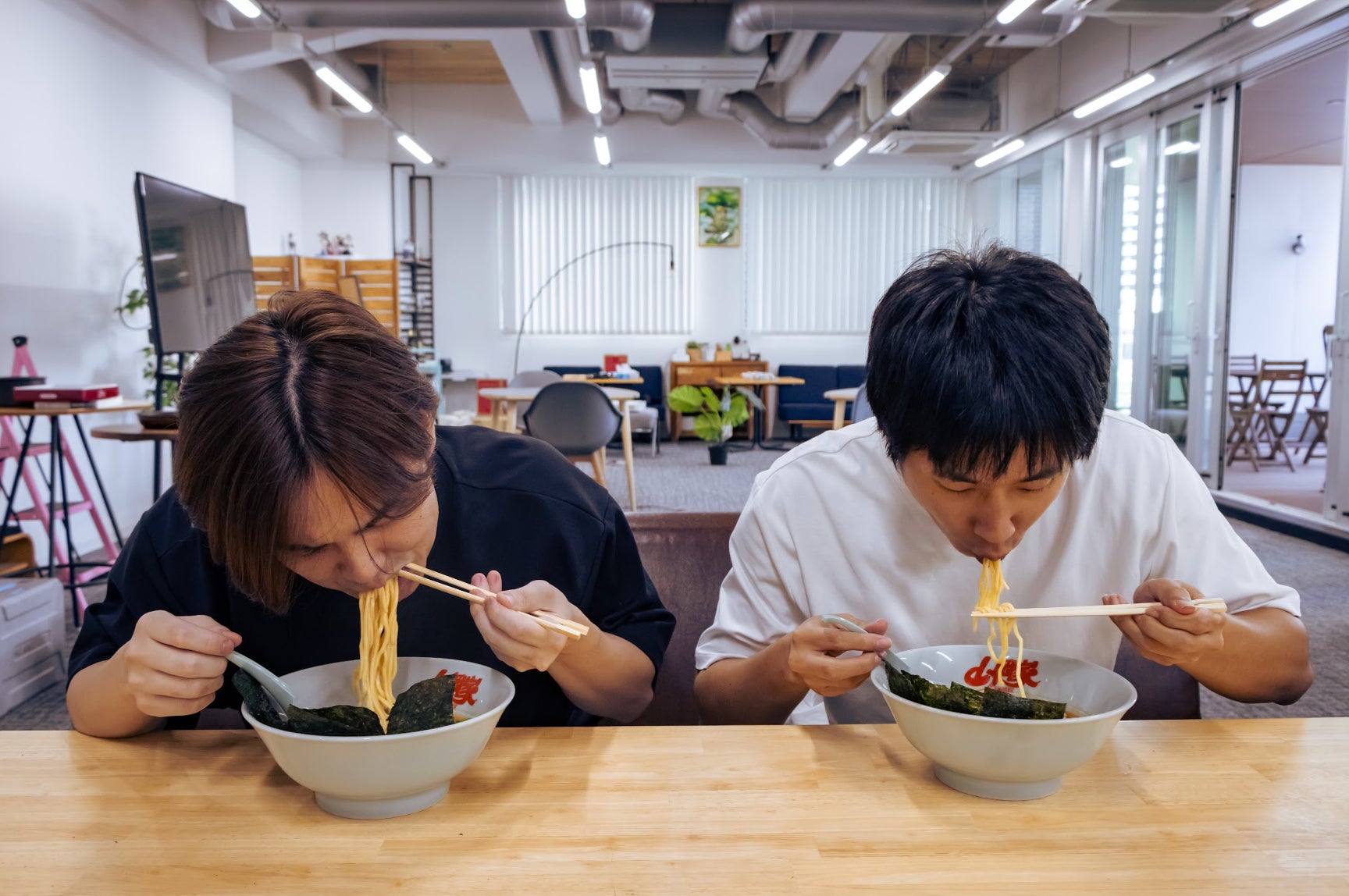 本制度は、従業員がいつでも無料でラーメン山岡家の乾麺をオフィスで食せるものであり、ご要望があれば、当社にご来社された方も召し上がれます。