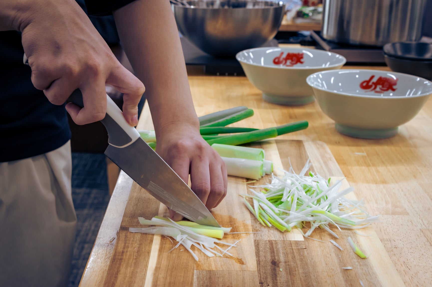 ②お湯が沸くのを待ちながら、具材を切っていく