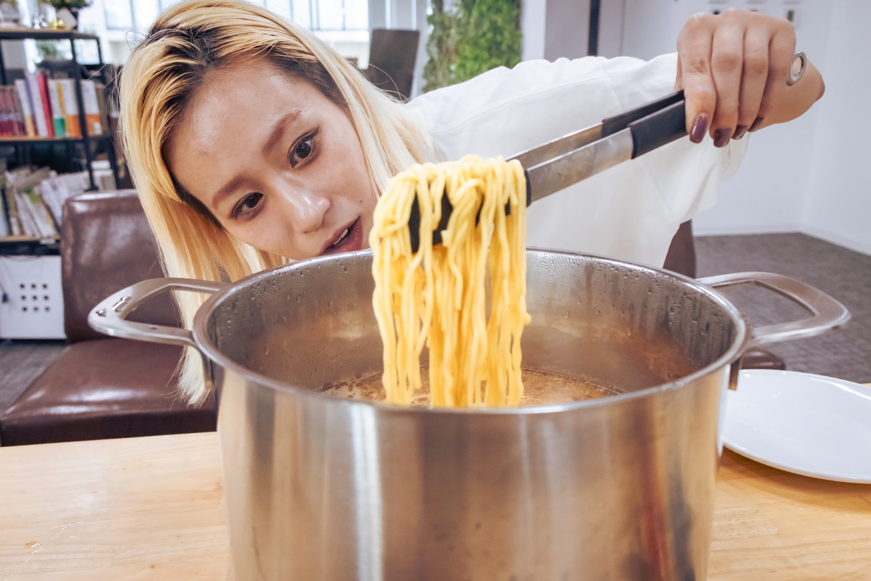 ③沸騰したら鍋に麺を入れ、強火のまま8分茹でる
