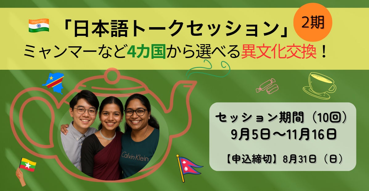 【締切8/31】「日本語トークセッション」(2期)ミャンマーなど4カ国から選べる異文化交換!