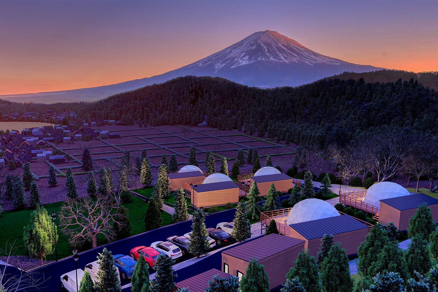 山梨を代表する観光地として知られる富士河口湖町の眺望抜群のスポットに 新たなグランピング施設 「グランファーム富士河口湖」がオープン。