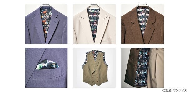 名場面がちりばめられた斬新な裏地をはじめ、キャラクターごとの特別仕様で、ガンダムファンならずとも楽しめる仕上がりとなっております。さらに日常でも着用できるよう、さりげなくガンダムの世界を楽しめる仕様になっています。