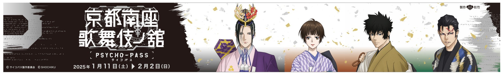 2025年1月11日(土)~2月2日(日)まで、京都南座で開催される「PSYCHO-PASS サイコパス 京都南座歌舞伎ノ舘」の新規描きおろし歌舞伎コラボイラストを公開しました。本コラボイラストは、1月18日(土)~2月2日(日)の期間、フォトスポットとして普段は客席からしか見ることができない南座の舞台や、劇場ロビーなどに各コラボ演目の歌舞伎衣裳・小道具とともに展示されます。また、1月11日・12日の2日間限定開催の歌舞伎朗読劇にてキャストが着用した衣裳の展示や、ミニキャラのスタンディパネル等も設置予定です。