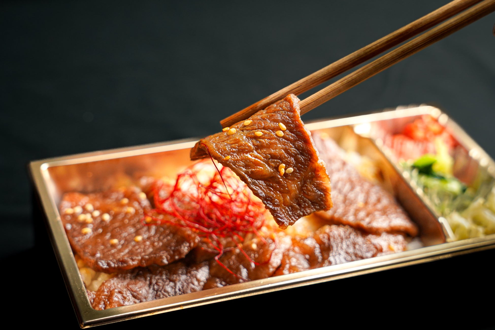 お弁当でも、‘手切り’のカットにこだわる焼肉弁当