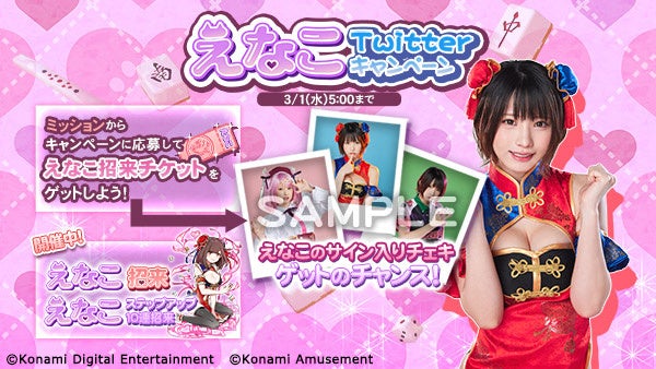 株式会社コナミアミューズメントは、人気コスプレイヤー「えなこ」とのコラボイベントを本日から開始したことをお知らせします。