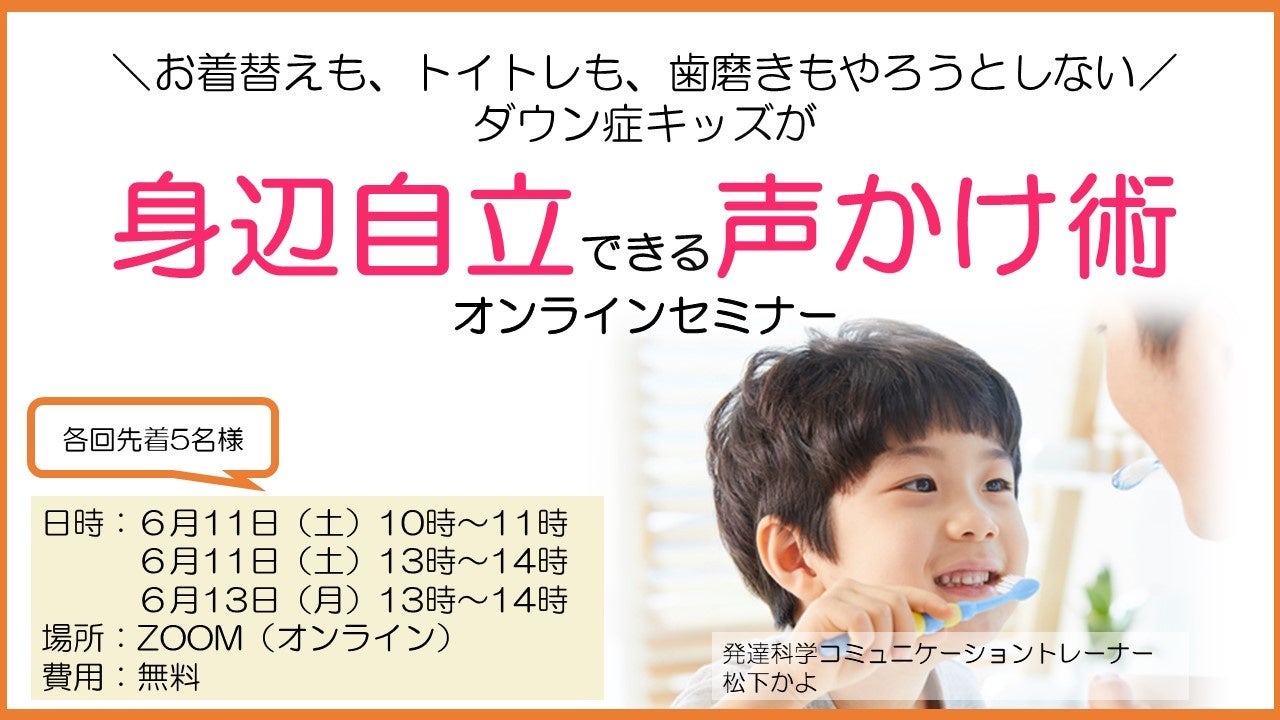 「\お着替えも・トイトレも・歯磨きもやろうとしない/ダウン症キッズが身辺自立できる声かけ術」無料オンラインセミナーの募集を開始