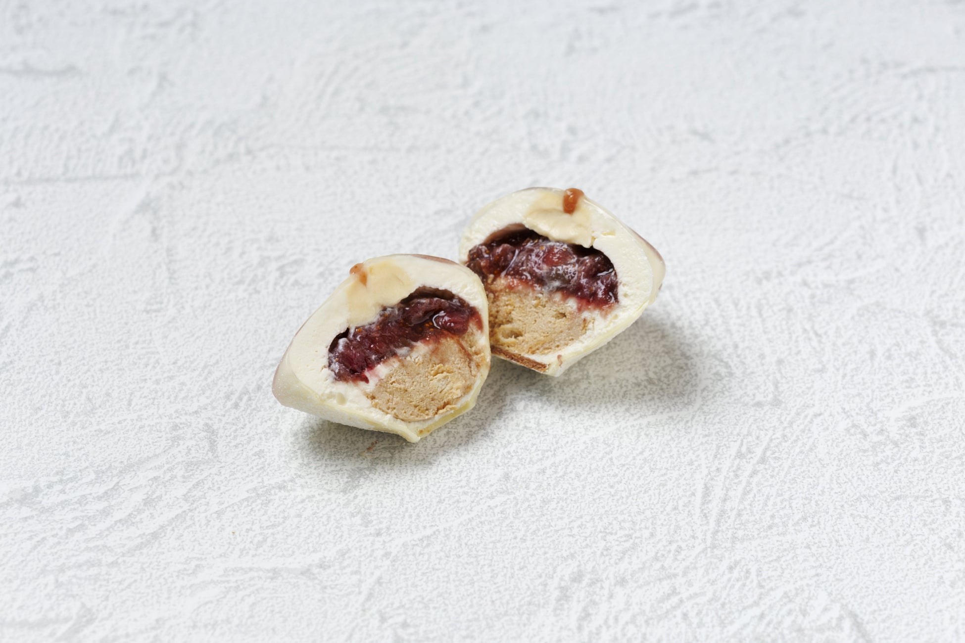 「Hana」シリーズに、秋限定フレーバー「イチヂク」が登場。見えないイチジクの花の美しさをテーマに、花びらの部分には瑞々しいイチジクのソース、内側には熟したイチジクのコンフィチュールを使用。さらに、クリームチーズ、チェダーチーズ、そして芳醇なボフォールチーズを絶妙に組み合わせました。
