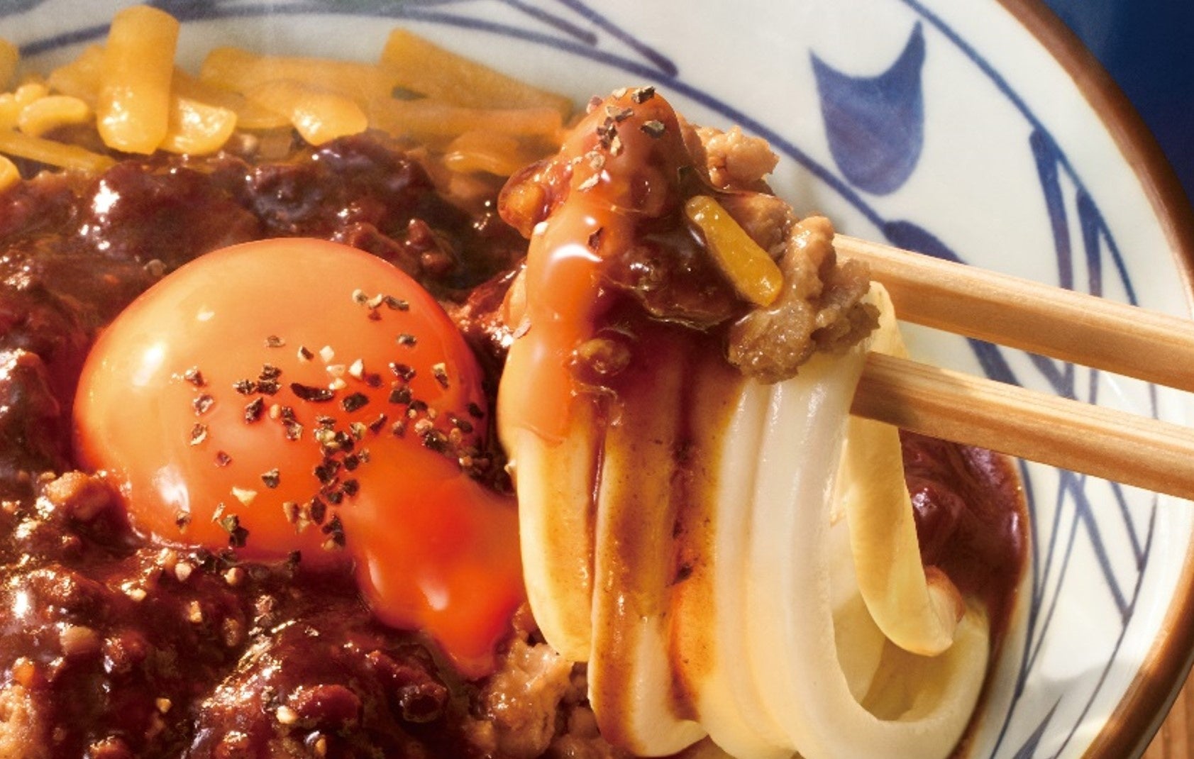 《あつあつの「釜抜き麺」にじゅわっと牛肉、濃厚玉子とからめてうまい『焼きたて牛すき釜玉うどん』完全新作!デミグラスソース、チェダーチーズに卵黄、コクが重なる『粗挽き肉チーズ釜玉うどん』が登場!》