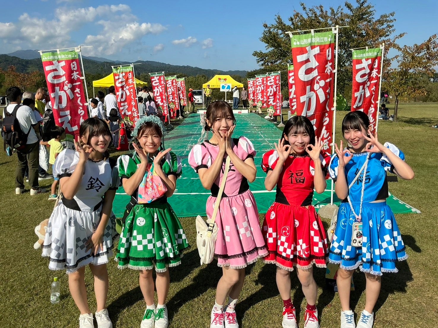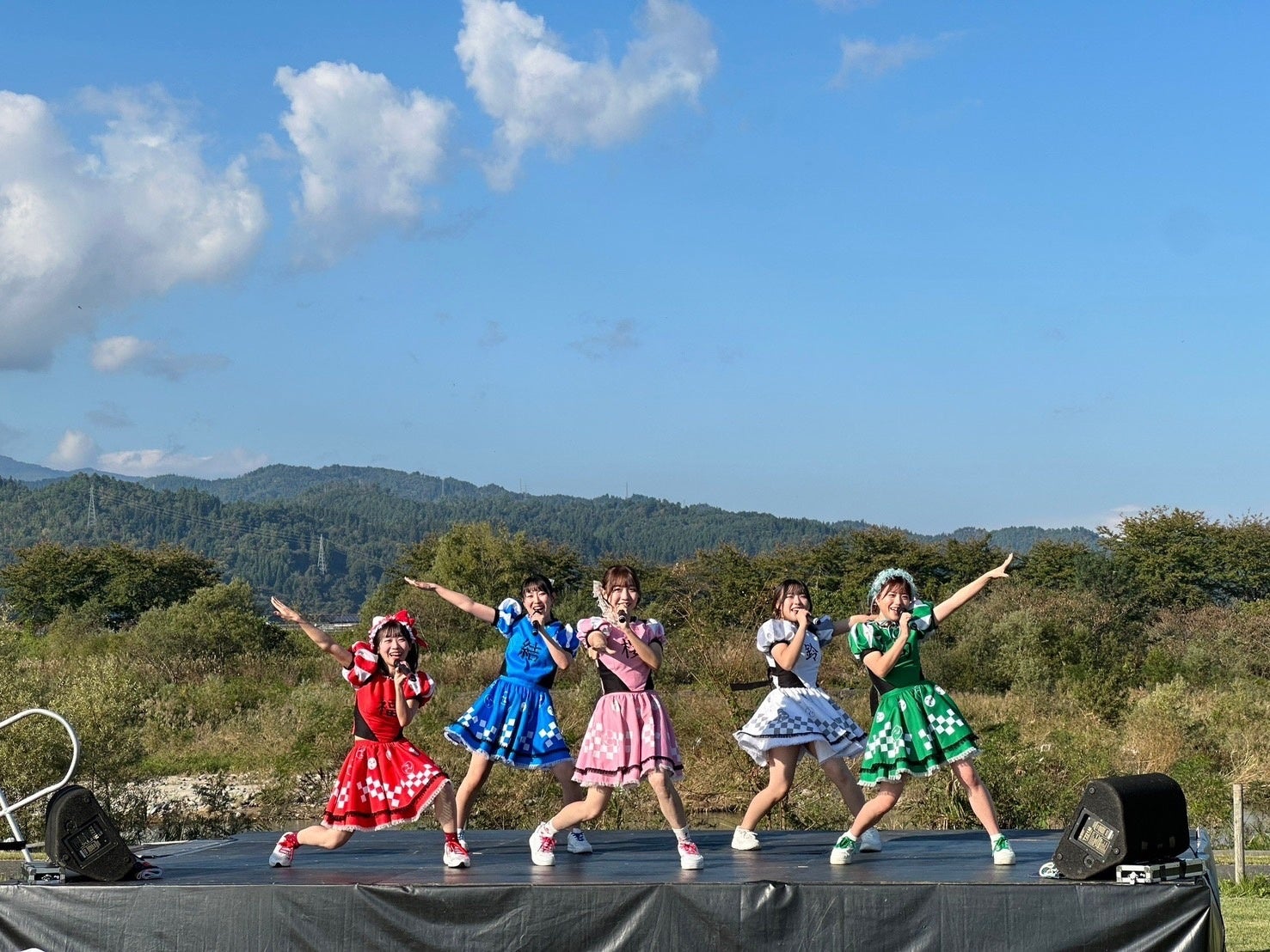 さらに10/13には、チェリーランドさがえで開催された「第15回さがえ秋のうまいもの市」にライブゲストとして出演!山形出身メンバーの佐藤櫻子が作詞した「山形に恋」をはじめとした東北愛溢れる楽曲を披露して、観客を魅了した。
