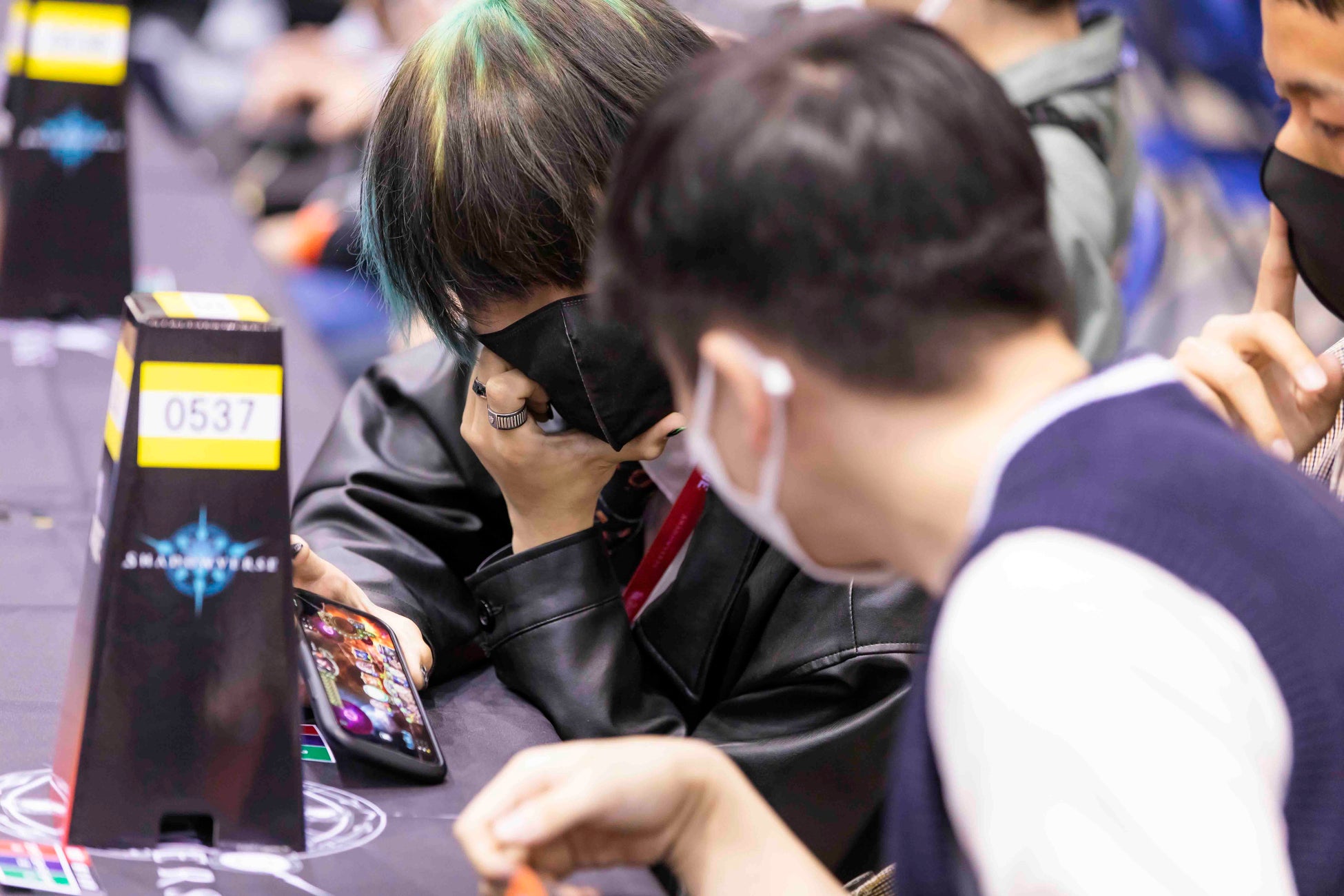 最後のフィーチャーマッチには、この時点で『Shadowverse』内のローテーションフォーマットMaster Pointランキング1位の小田選手が登場。強豪プレイヤーを相手にsola選手も第2ラウンドこそ取ったものの、最終的には小田選手がトーナメント8を制してファイナリストに。勝利後のインタビューで「(今環境で有力な)狂乱ヴァンパイアの王です」と自負してみせた彼は、「(GRAND FINALSでは)新時代の覇者の力を見せたい」と力強く宣言しました。