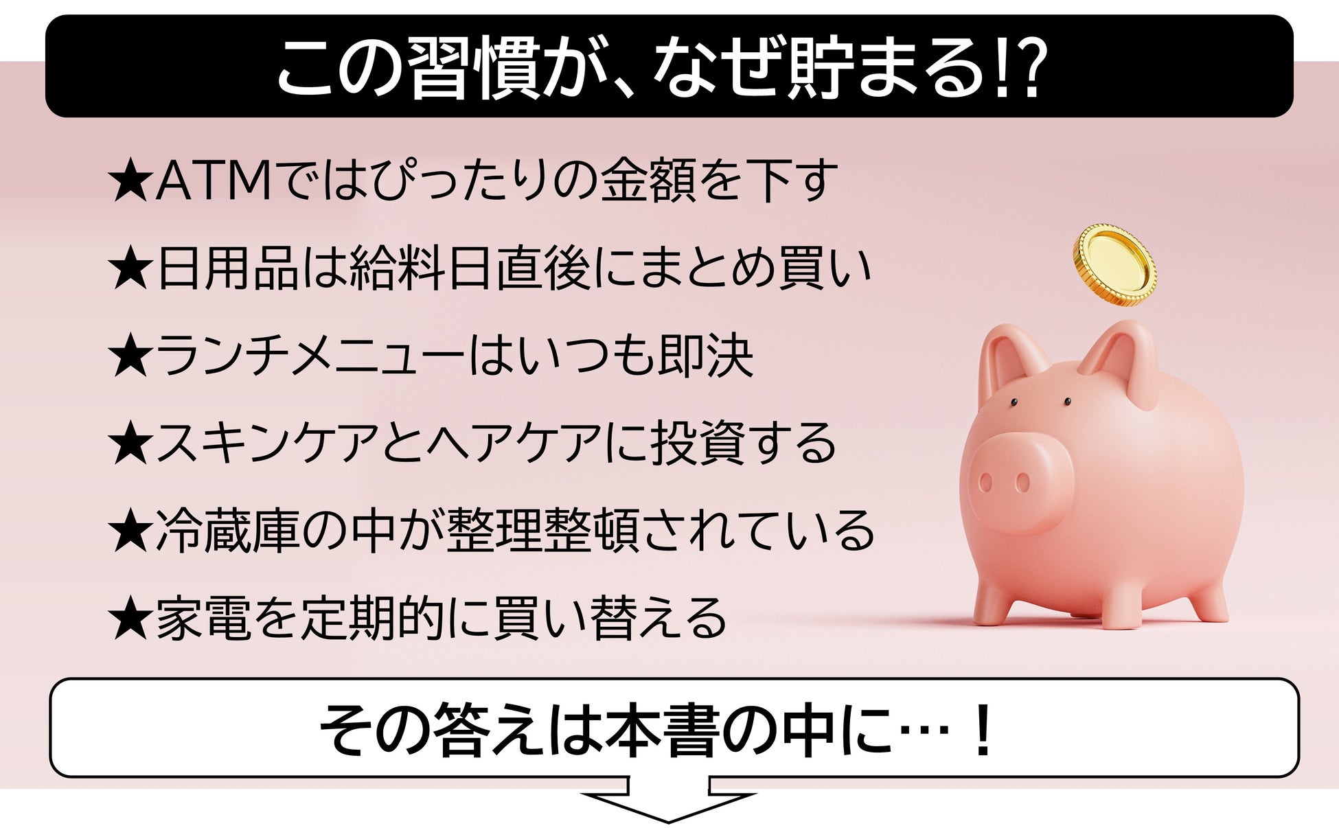 「服やアクセサリーより、スキンケアとヘアケアに投資する」「外食するよりも、調味料やスパイスにお金をかける」などなど、なぜか、自然とお金が貯まる人だけが知っている考え方や行動パターンを紹介する。