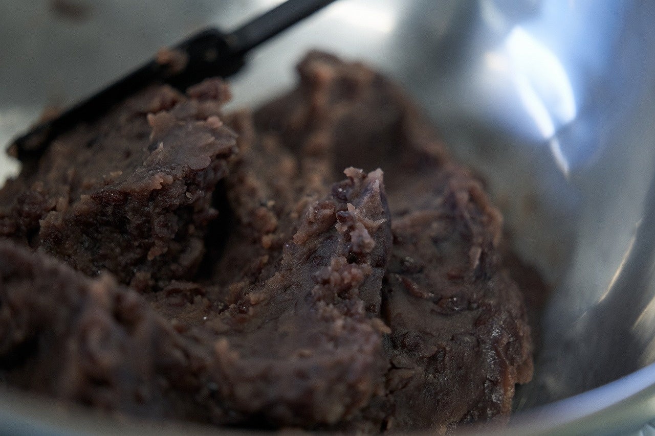 つぶあんは粒のインパクトが残るあん。こしあんは滑らかさを出したあん。どちらが好みの方でも食べていただけるように、つぶあんにこしあんをブレンドすることで、滑らかさの中に粒の食感が感じられる、こだわりのあんに仕上げました 。