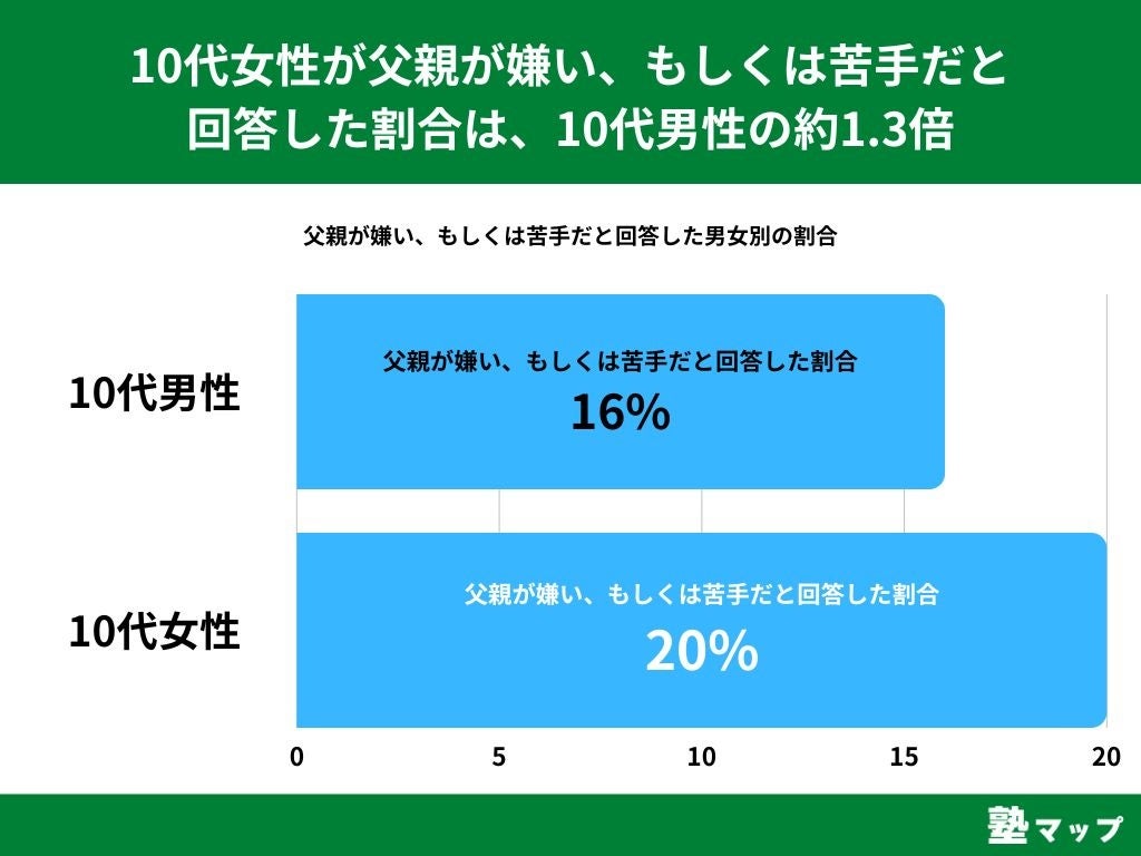 【10代女性が父親が嫌い、もしくは苦手だと回答した割合は、10代男性の約1.3倍】