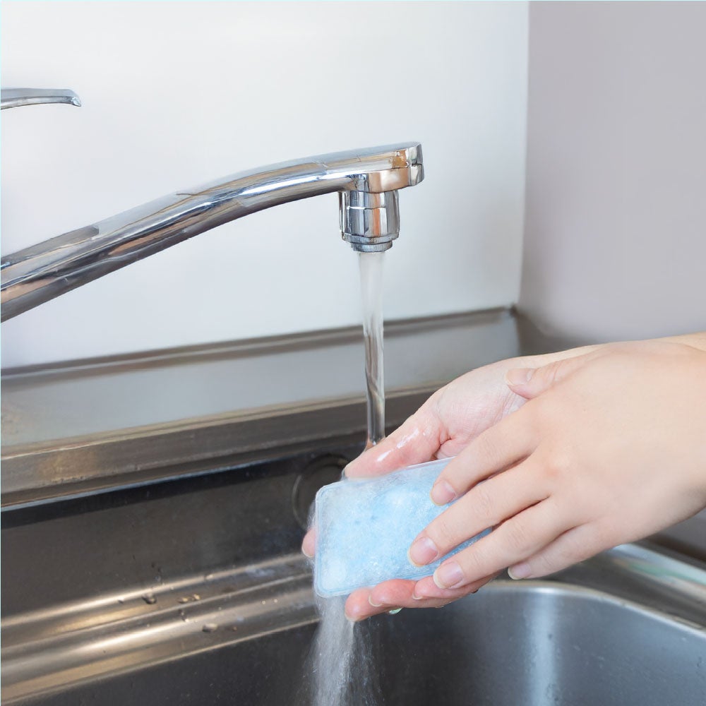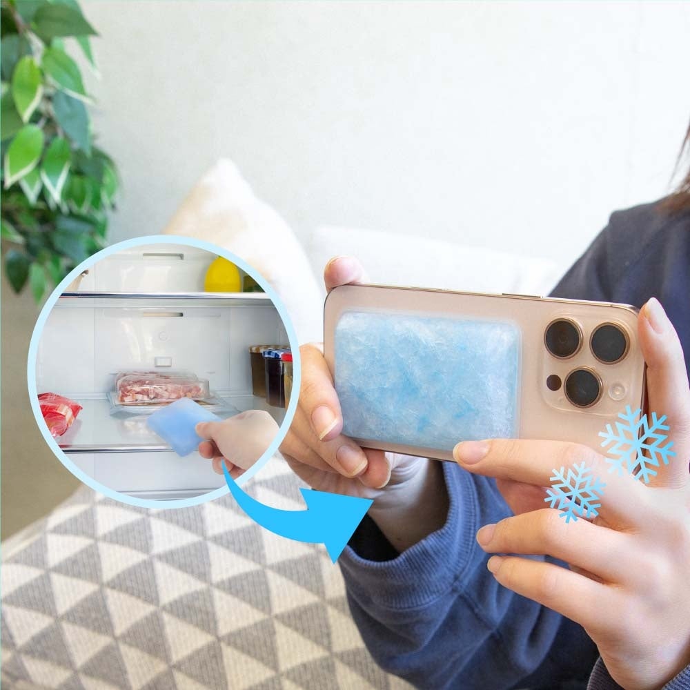 室温に近い温度で徐々に固まる性質をもつため、28℃以下の環境に置くか中身が溶けたら冷蔵庫に入れたり冷水で冷やしたりするだけで、冷却性能が元に戻ります。