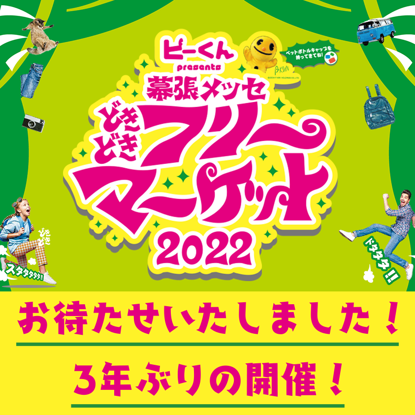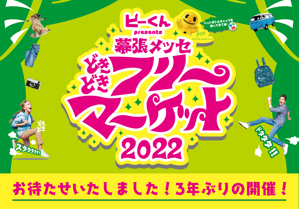 幕張メッセ“どきどき”フリーマーケット実行委員会(株式会社幕張メッセ/株式会社ベイエフエム)は、リアルフリーマーケットイベント「ピーくん presents 幕張メッセ“どきどき”フリーマーケット2022」を5月3日(火・祝)~5日(木・祝)の3日間、千葉県・幕張メッセ国際展示場1~6ホールにて開催致します。