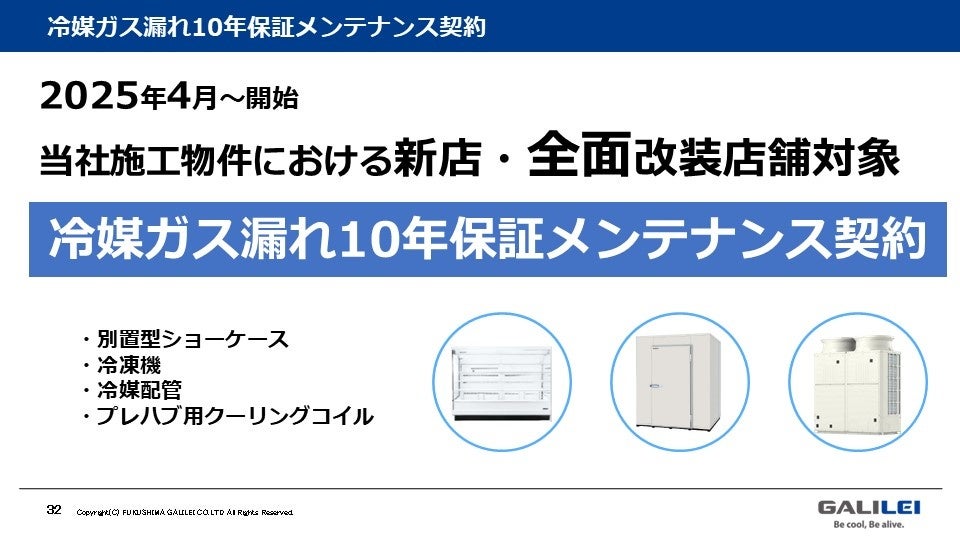 フクシマガリレイ株式会社(本社:大阪市西淀川区、代表取締役社長 福島 豪)は、スーパーマーケットなどの小売りや物流施設などの自社施工物件に関して、2025年4月より冷媒ガス漏えいにおける冷却不良・修理に関わる費用を10年間保証する《冷媒ガス漏れ10年保証 メンテナンス契約》に関する記者発表会を2月12日(水)10時より開催しました。
