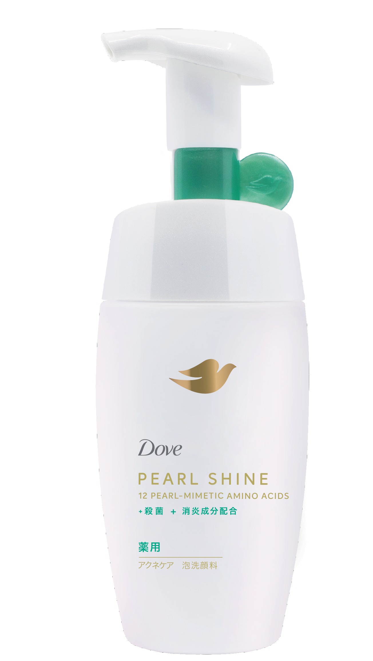そこでダヴは、25年にわたる肌研究を通じて、真珠と肌がともにアミノ酸を含む成分から構造された層を持つ点に着目。真珠の構成要素と同種類の12種類のアミノ酸を配合した、独自の「パールシャイン®処方」で、汚れを落とし、洗顔後の肌をうるおいで満たし、真珠のような透明感とつやのある肌印象へと導く「ダヴ パールシャイン」シリーズを発売いたします。