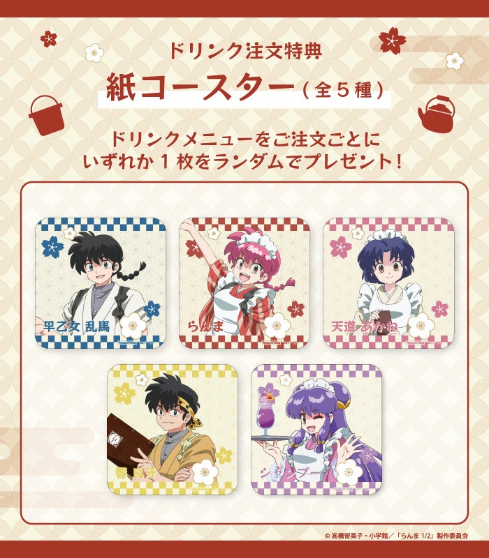 このたび、エルティーアールは、「らんま1/2」の完全新作的アニメ化を記念し、和装をまとったカフェオリジナルの描き下ろしイラストを使用したワイワイ楽しいテーマカフェを展開いたします。