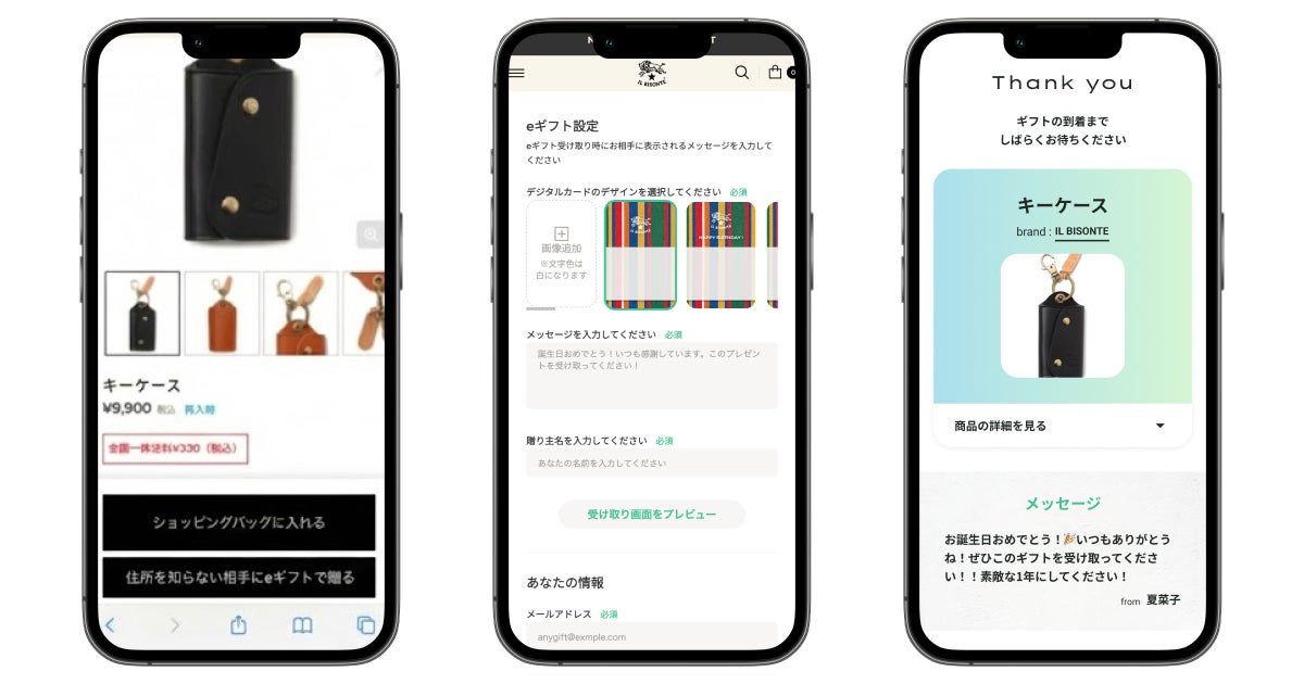 今回、当社のAnyGiftの提供により、「IL BISONTE(イル ビゾンテ)日本公式オンラインストア」にて人気の商品がeギフトとして贈れるようになります。