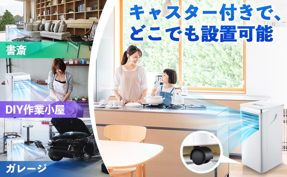 本体は31.5 x 31 x 69.8 cmでコンパクトで、賃貸住宅やエアコンを設置できないお書斎、オフィス、カレージ、真夏の車中泊など、様々なシーンでの活用が可能です。