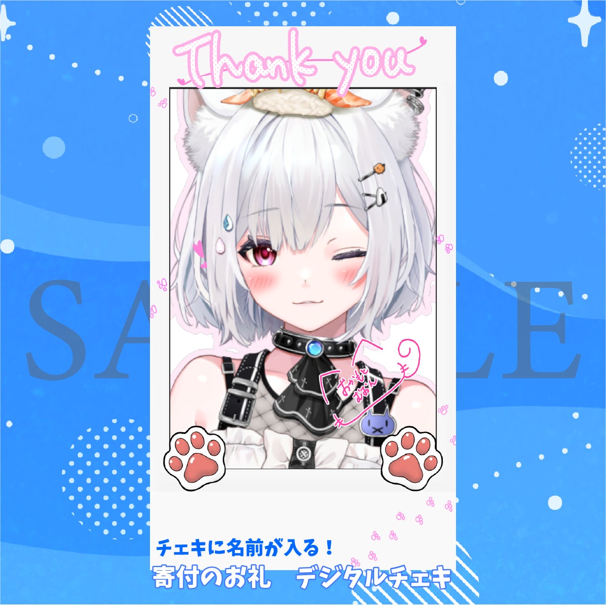 寄付サイトよりふるさと納税をした方へ寄付のお礼として今回限りの崗本むおんデジタルチェキとカレンダーを配布いたします。チェキには一人一人寄付者のお名前が入る特別なチェキになります。