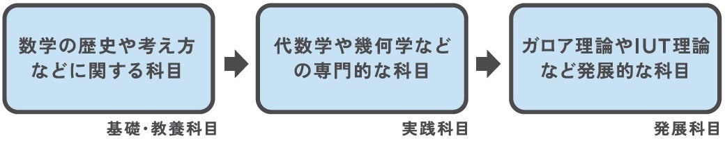 基本的な数学のカリキュラムに加え、どのように社会に応用していくかをテーマにした学びを展開。数学の歴史や微積分などを体系的に学んだ上で、経済や情報分野に活かせる実践的な科目を設置します。また、数学を専門的に学びたい意欲のある学生に向けて、ガロア理論やIUT理論などの科目を開講する予定です。