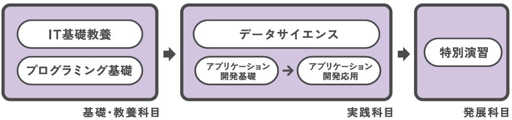 国家資格を目指せる知識を習得し、実際に開発を行う実践的な科目を設置します。プログラミングの基礎を学んだ上で、段階的にITやアプリの開発、データサイエンスのスキルを身に付けます。最先端のICTツールを導入し、全産業分野で活躍するための実践的な情報教育の実現を目指します。