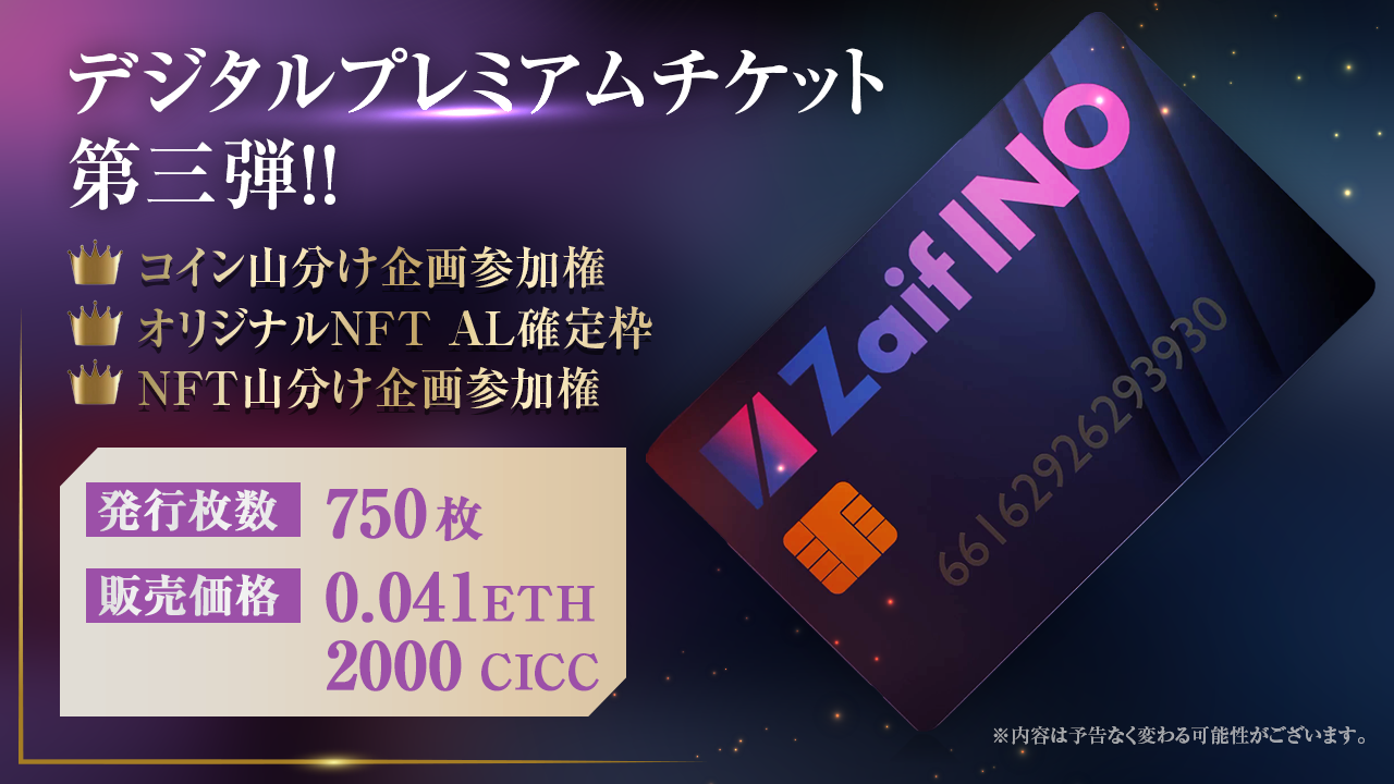 【Zaif INO】カイカコイン(CICC)で購入可能なNFT第一弾!「Zaif INOデジタルプレミアムチケット」販売決定!