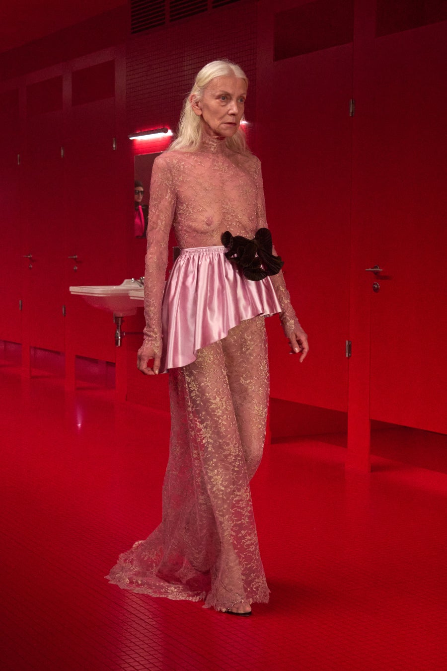その結果、生まれたのは、ディストピア的で心をかき乱す、まるでデヴィッド・リンチの映画のような空間。それはあらゆる規範の成文化から解き放たれた一時的に自律した領域であり、厳格な二項分類を覆す可能性を秘めている立派な政治的空間でもあります。ハンナ・アーレントの語る「出現の空間」として、服を着脱することを通し、親密さがふたたびアイデンティティを構築する役割を取り戻します。本質主義的な立場からは遠く離れた場所で。