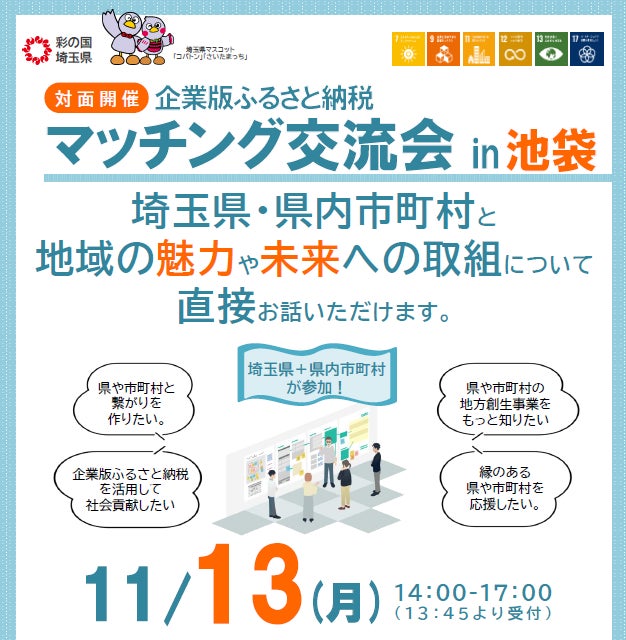 【埼玉県】【初開催】企業版ふるさと納税に関心のある企業と県及び市町村とのマッチング交流会を開催します