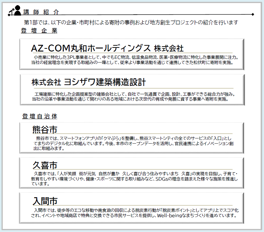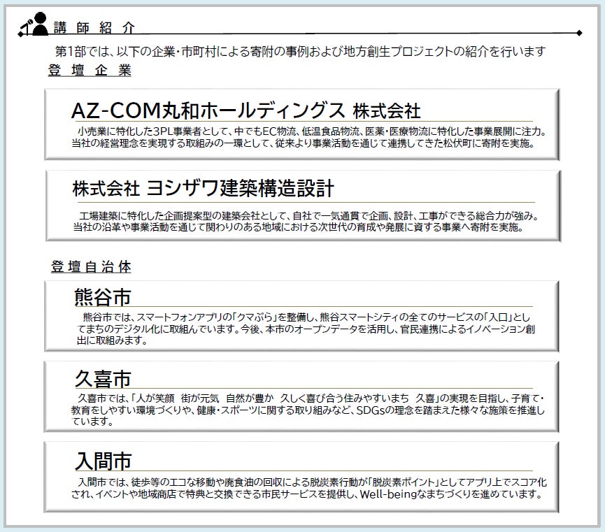 制度活用事例と各市町村の地方創生プロジェクトの紹介(会場又はオンライン)
