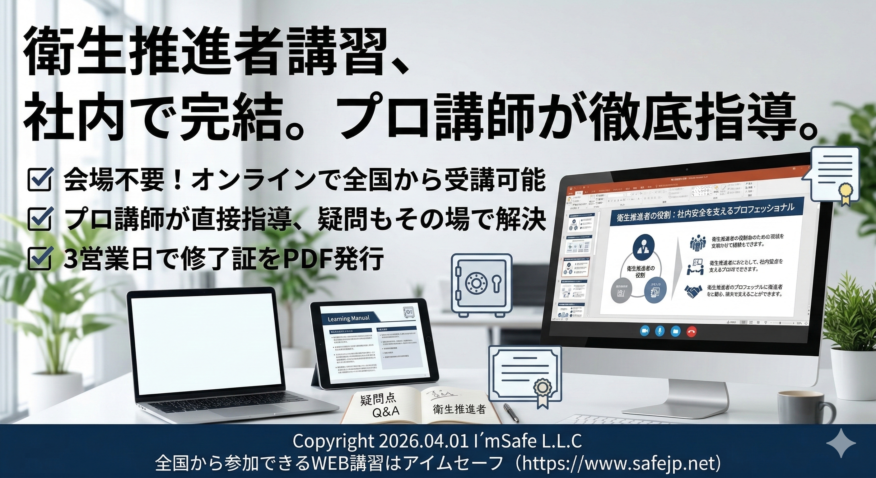 【2026年 5月のオンライン講習:衛生推進者 講習】便利なオンライン講習会のスケジュールが公開されました。