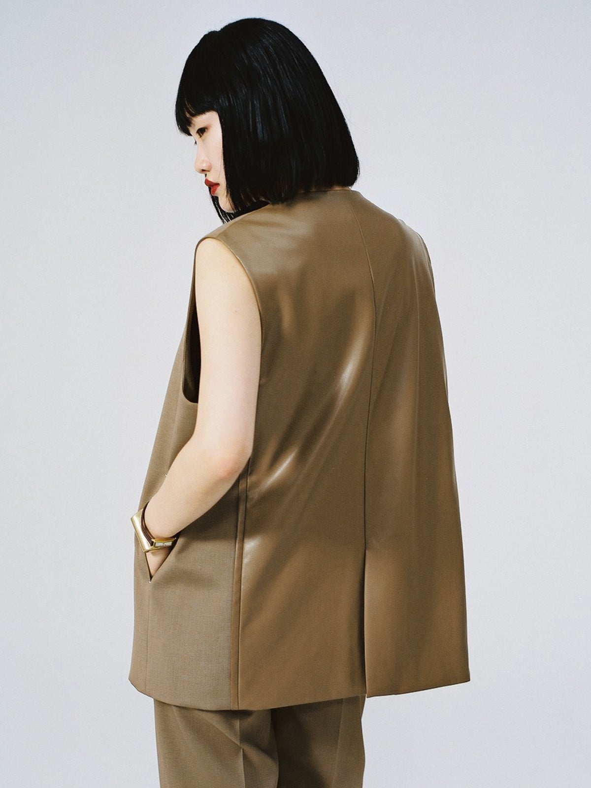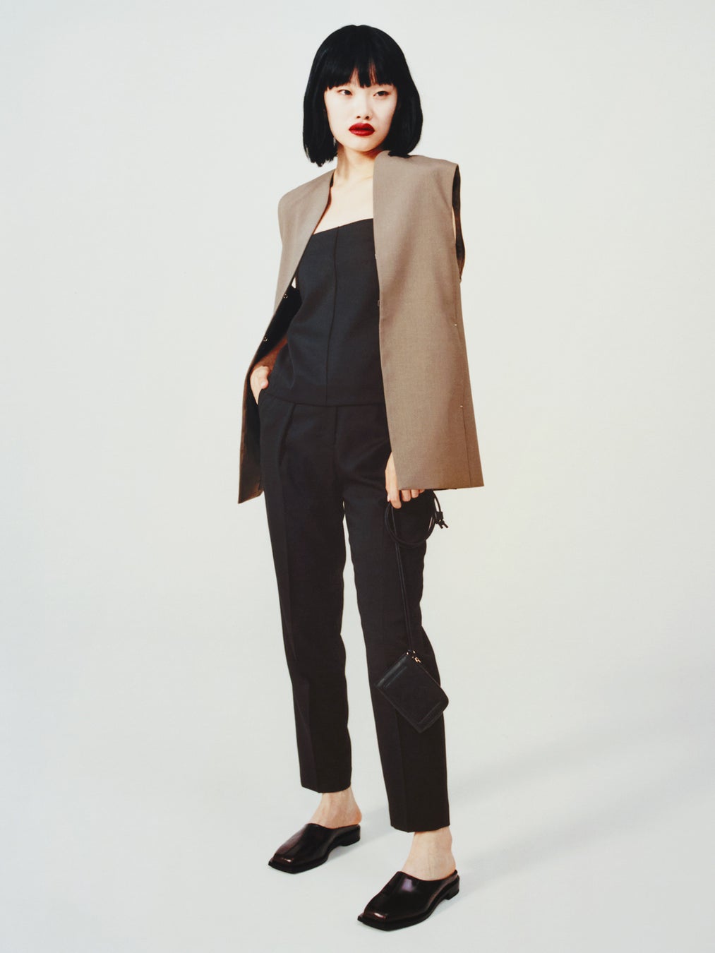 黒石さんのデザイン画をどうやったら実現可能かチームの皆で試行錯誤しながら商品に落とし込みました。特にここ数シーズン、ビスチェはトレンドアイテムの1つになってはいたんですけれども、なかなかチャレンジできていないアイテムでした。今回は黒石さんの得意とするレイヤードスタイルで、ビスチェをビジネスアイテムとして企画をしています。単体ではなく、パンツとセットで販売することで“商品の価値”を高める黒石さんのこだわりのポイントになっています。