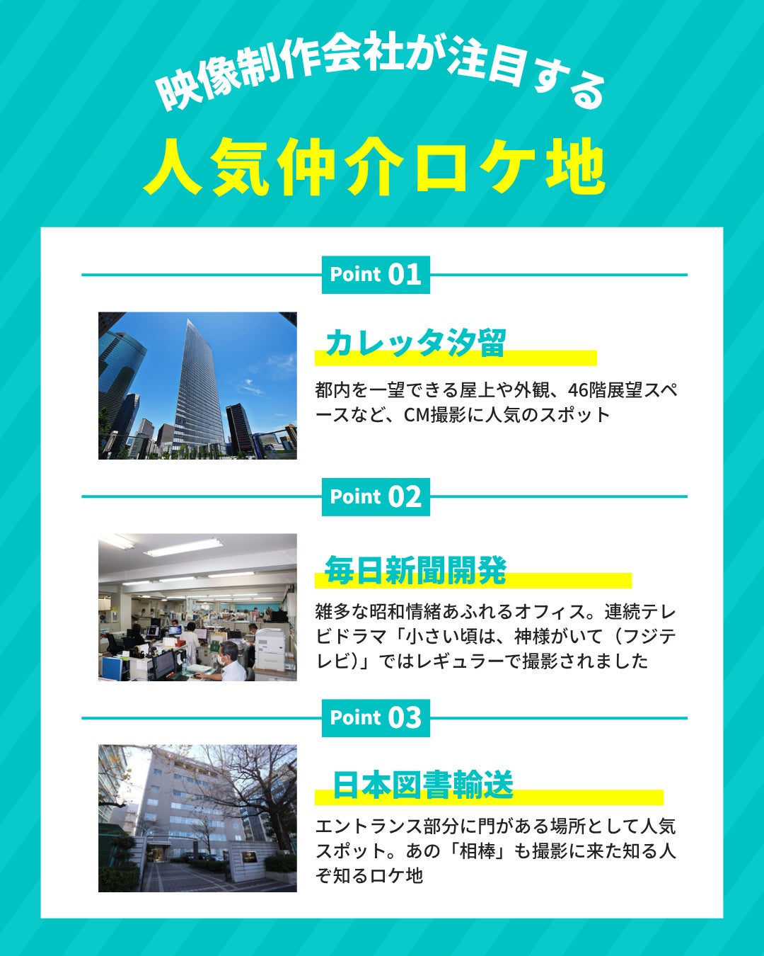 映像制作会社が注目する人気仲介ロケ地