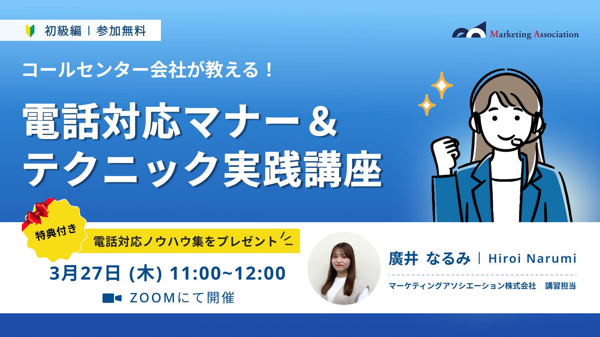 コールセンター代行サービスを提供するマーケティングアソシエーション株式会社(本社:東京都台東区 代表取締役:中園広和)は、2025年3月27日(木)に、ウェブセミナー『【コールセンター会社が教える!】電話対応マナー&テクニック実践講座』を開催します。