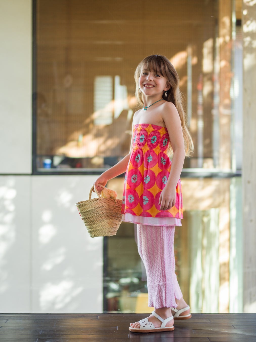 さらに、ロンハーマン店舗ではこのほかにもSZ Blockprintsとのコラボレーションアイテムが各店にてラインナップ中。波模様が目を惹くメキシカンパーカー&ショーツや、着るだけでわくわくするような可憐なミラドレスも今の季節見逃せないアイテム。小さいうちはドレス、大きくなったらスカートに、成長に合わせて着こなしを楽しめるアイテムです。