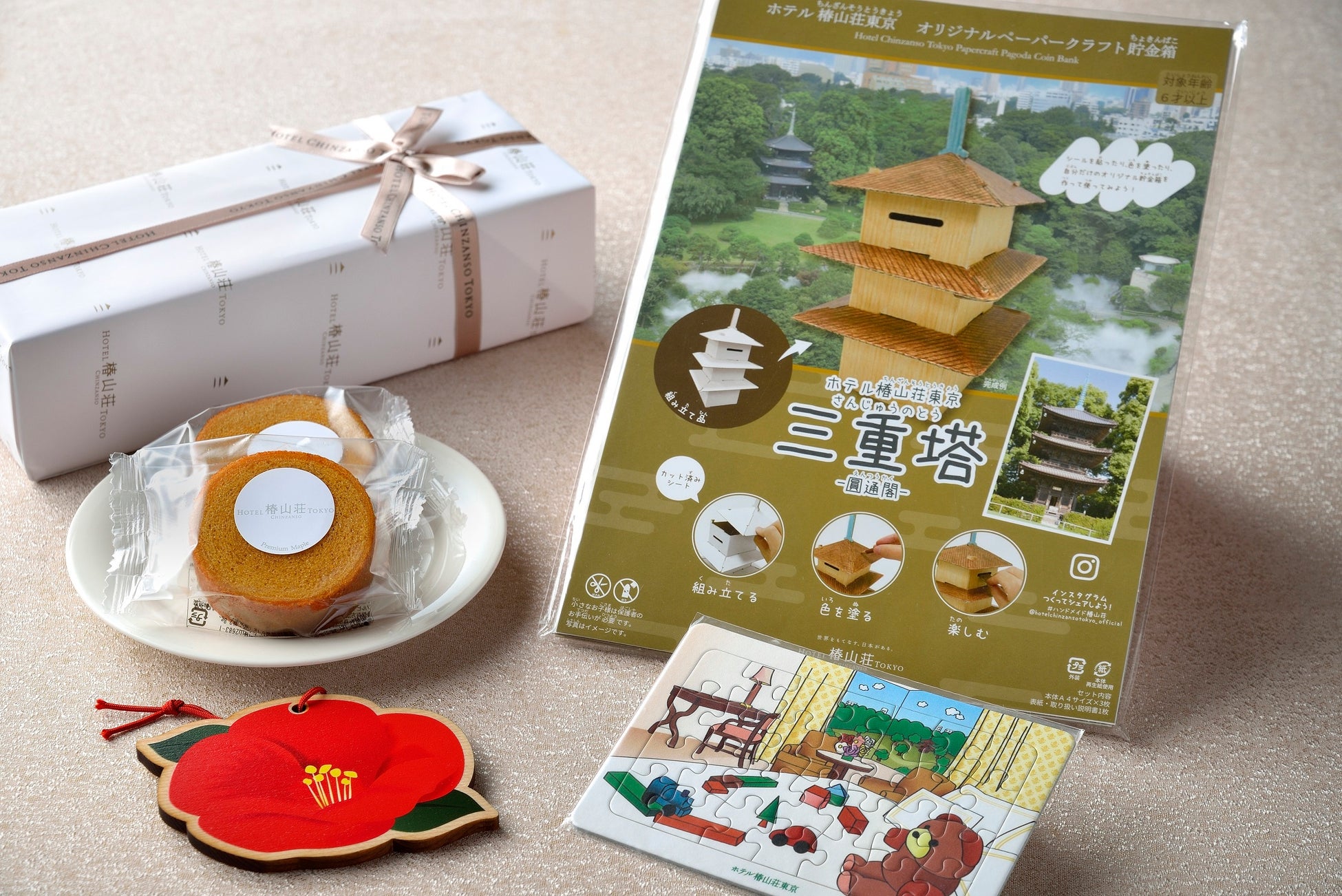 ・記念品(ホテル椿山荘東京オリジナルバームクーヘン、椿絵馬、三重塔ペーパークラフト、オリジナルジグソーパズル)