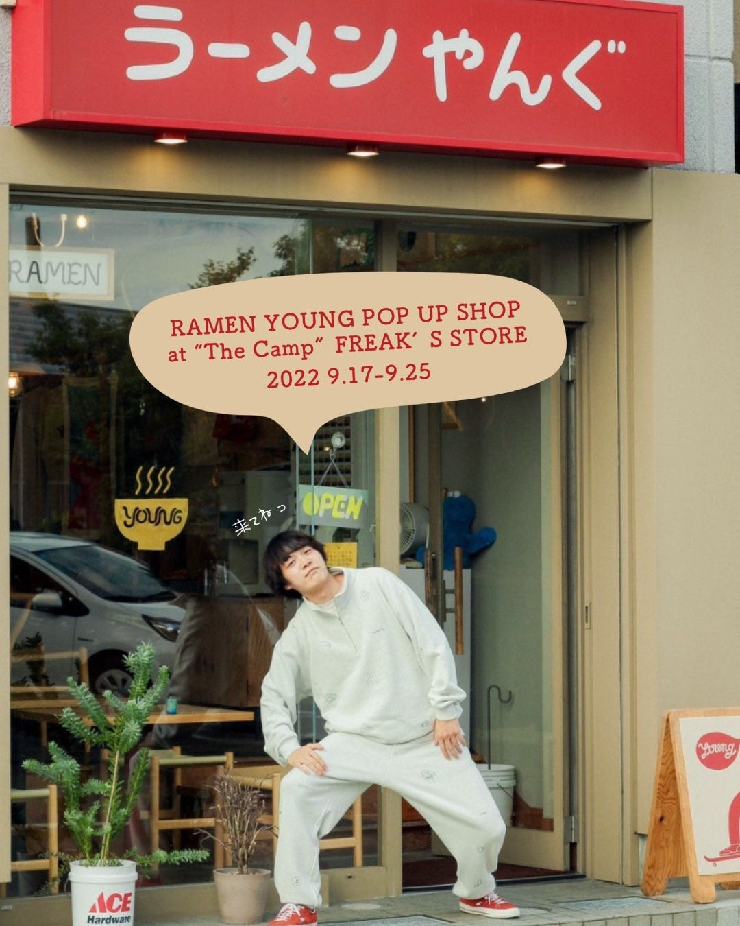 9月17日はなんとラーメンやんぐが"The Camp"FREAK’S STOREに出現! 一日限定のラーメンの提供を行います。25日まで期間限定でグッズと冷凍ラーメンも販売!この機会をお見逃しなく!