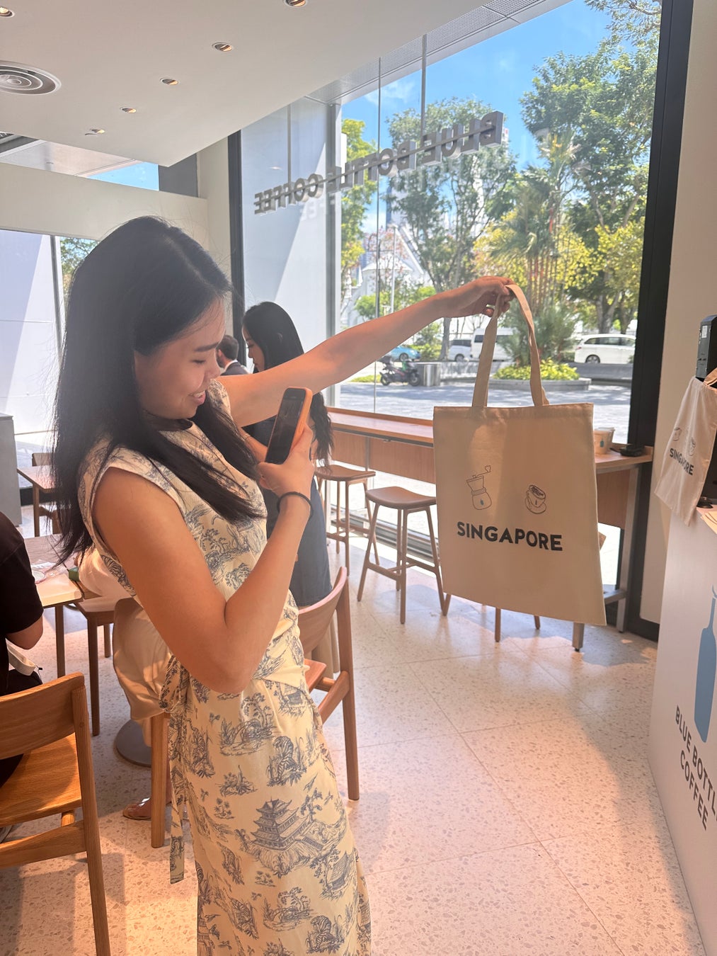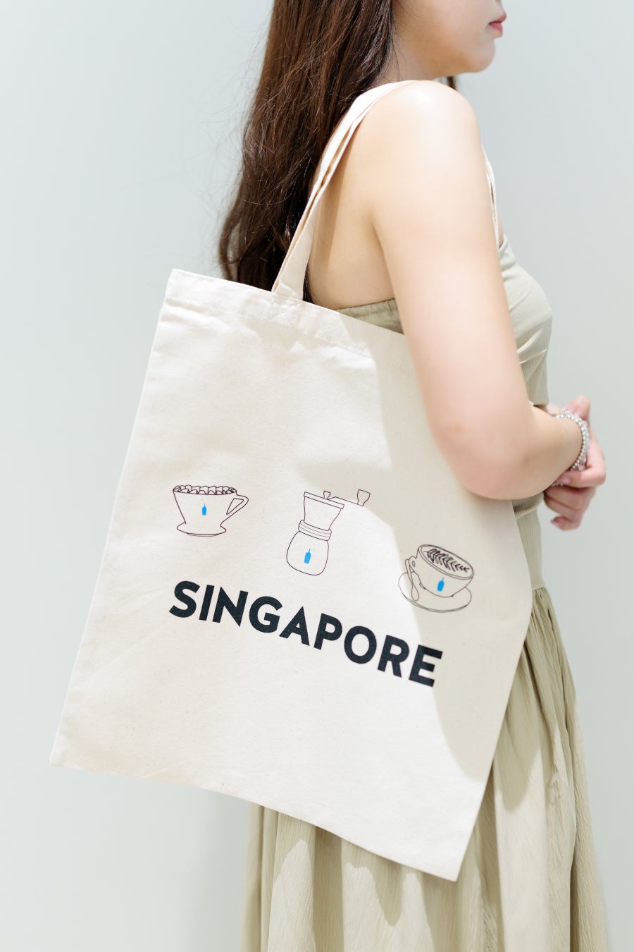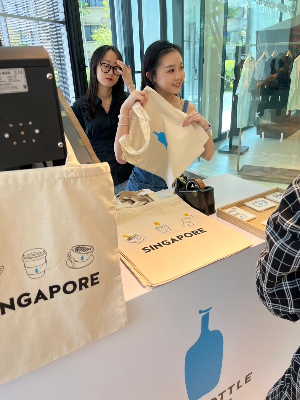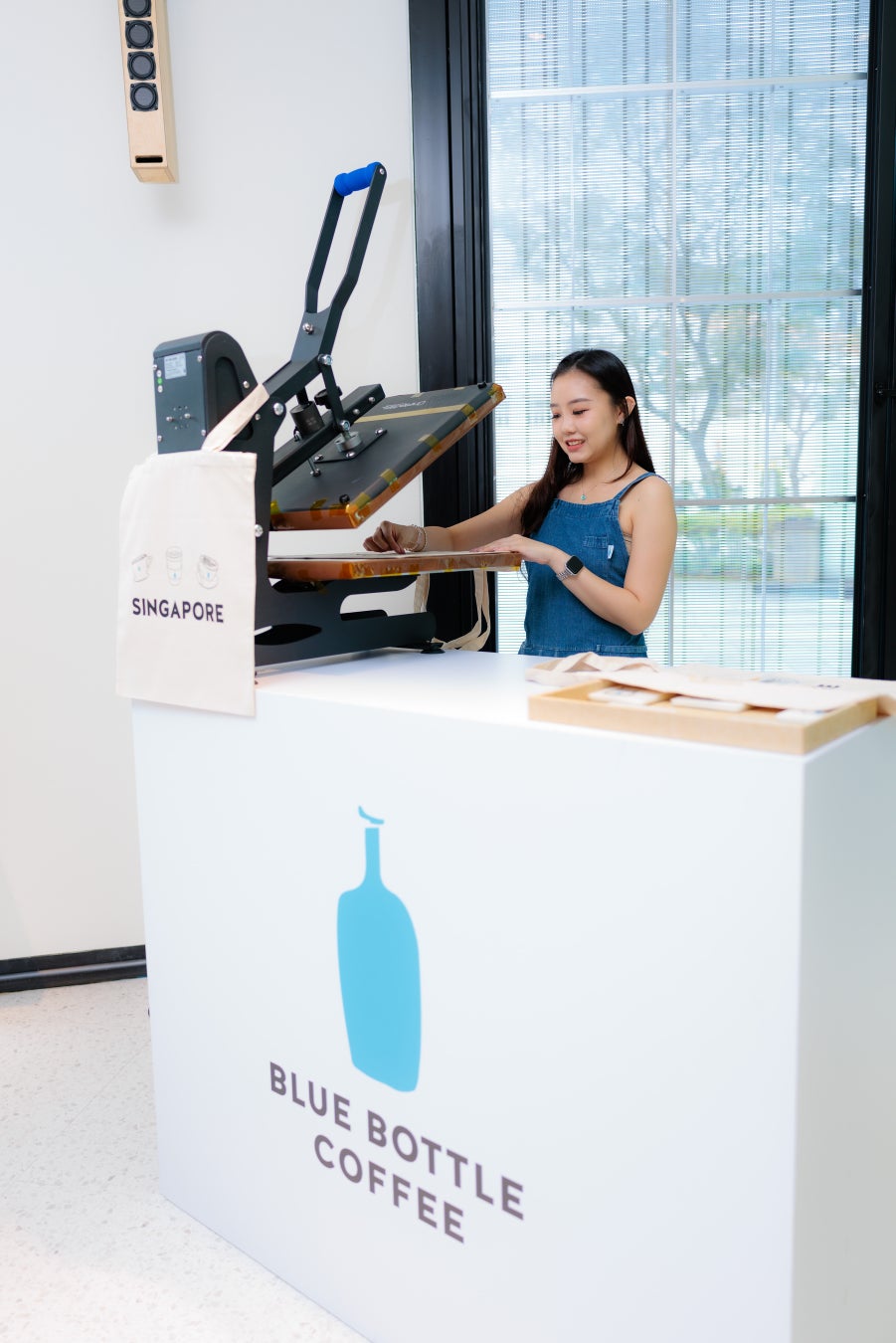オープン記念のシンガポール限定商品はBlue Bottle Coffeeオリジナルの5種類のアイコニックなコーヒーモチーフのイラストの中から好きなデザインを店頭で選び、その場でプリントを施す、スペシャルなトートバッグ。プレビューイベントで一足先に体験した参加者からは、「自分だけの特別なバッグを手に入れることができて、すごくうれしい!」「お土産にもぴったり!」との声が。