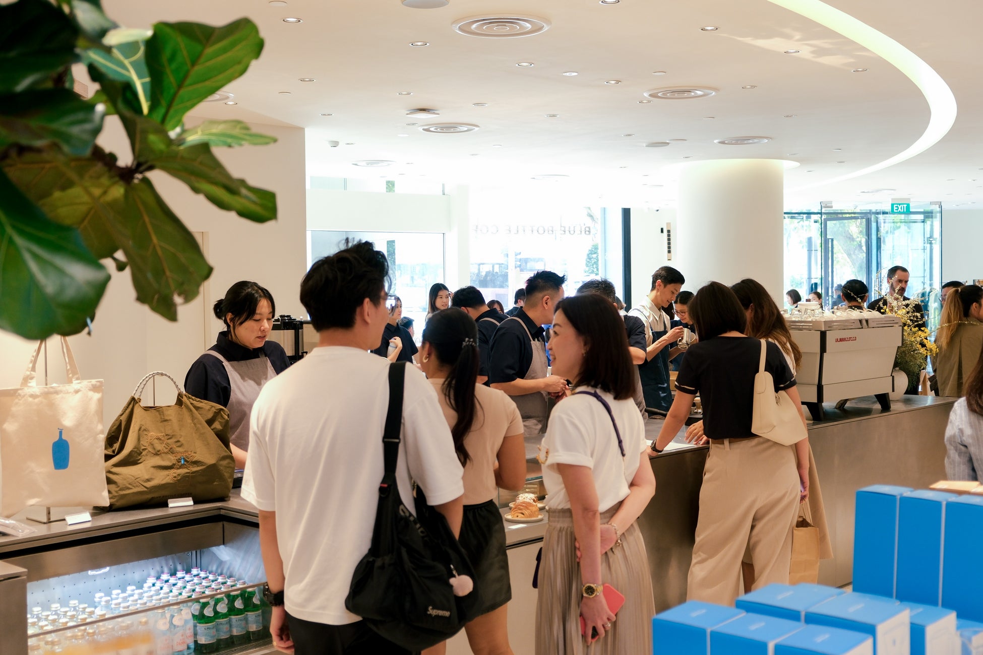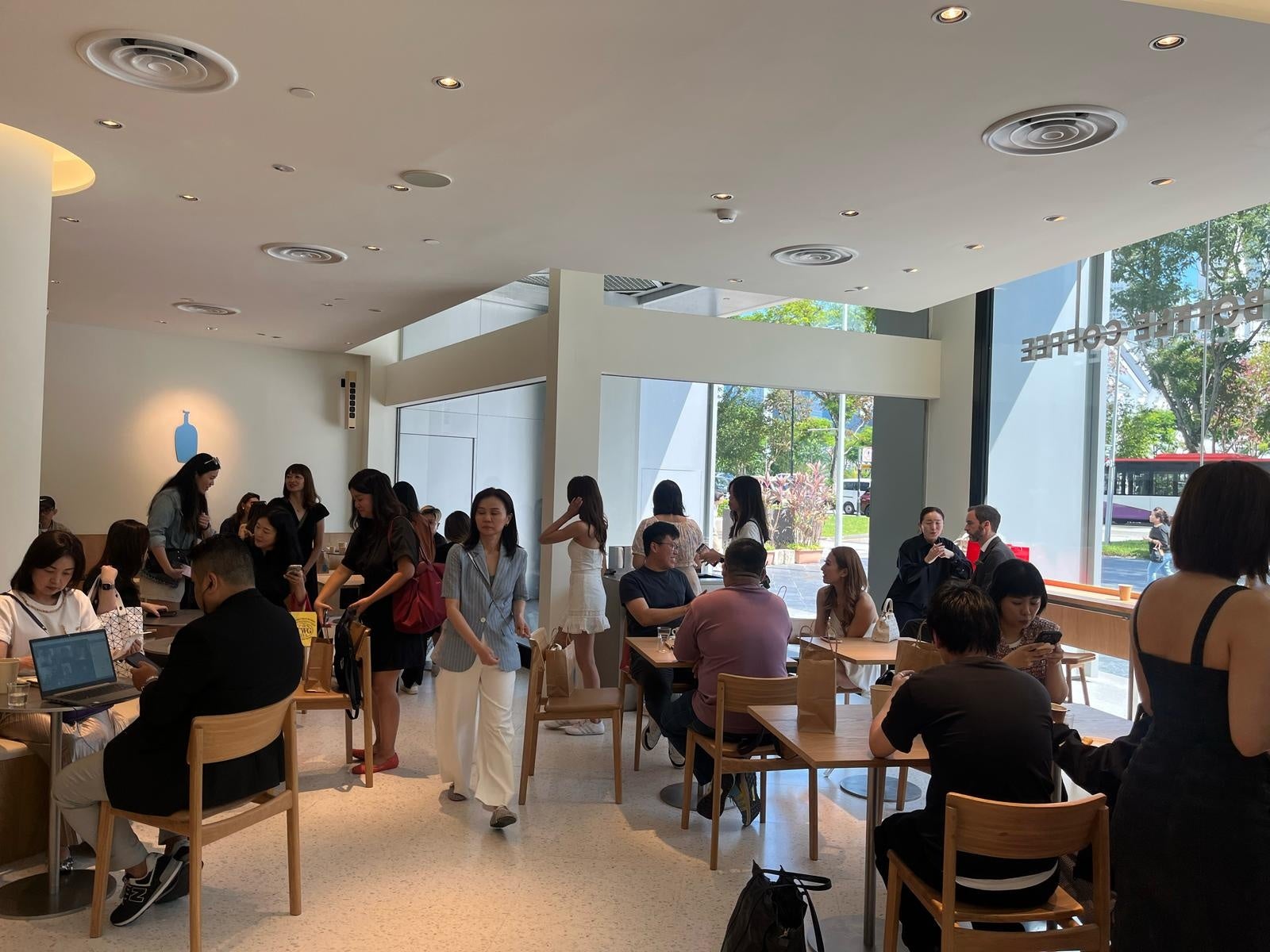 オープン初日には、平日にもかかわらず、開店前から行列ができるほど。シンガポールだけでなく周辺国からの来場もあり、カフェオープンを楽しみにするお客さまで大いに盛り上がりました。特に、店頭でオリジナルのプリントができる限定バッグや、現地人気ペイストリーとコラボした限定のフードメニューが大好評。4月2日(水)には、プレビューイベントも開催され、現地の大手メディアや人気KOLなど約260人が参加し、Blue Bottle Coffeeのみならず、ルミネシンガポール全体がこれまでにないほどの賑わいとなりました。