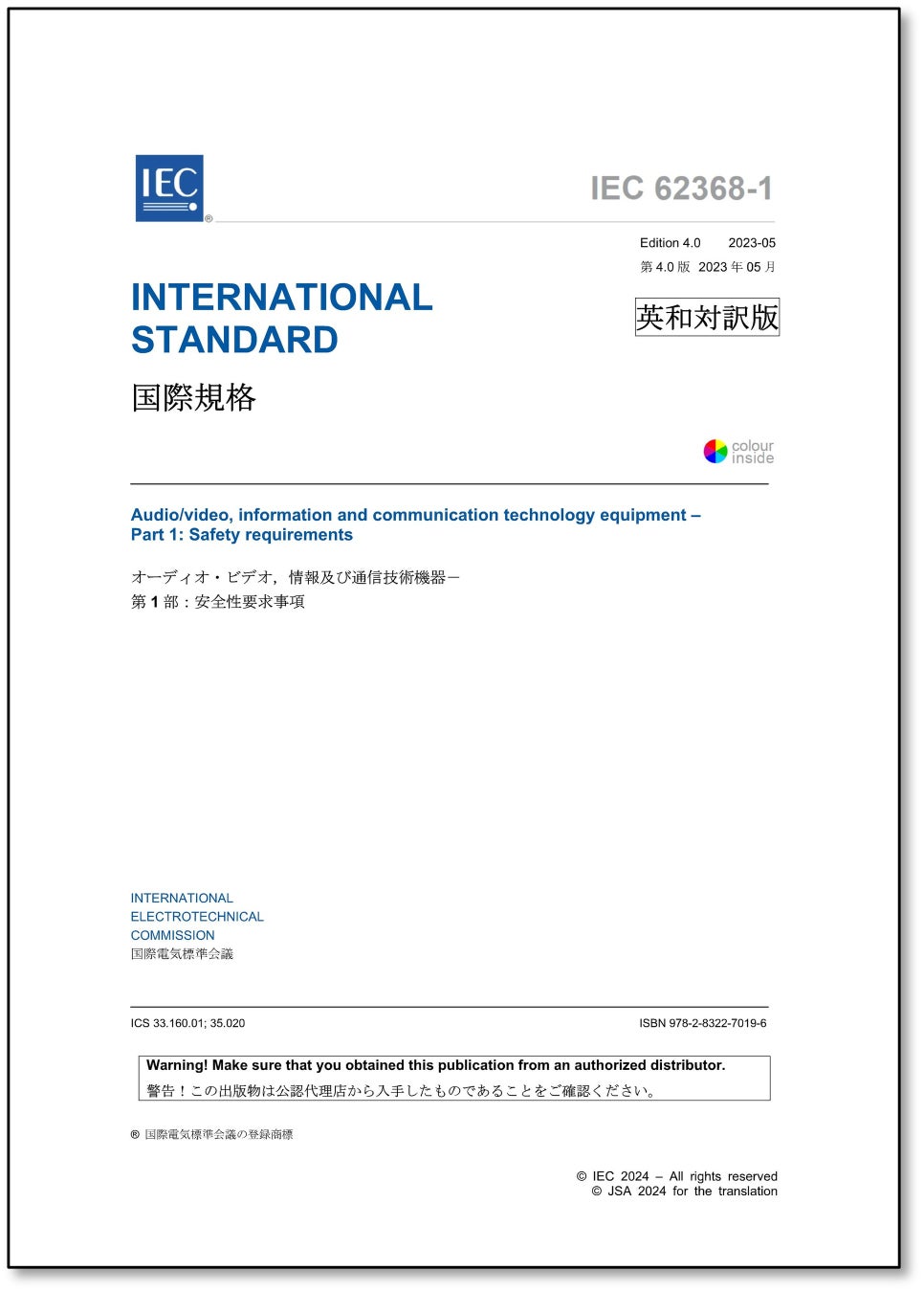 【新刊邦訳規格の発行!】IEC 62368-1 Ed. 4.0:2023 (b)「オーディオ・ビデオ、情報及び通信技術機器-第1部:安全要求事項」他2点の英・日対訳版を発行しました