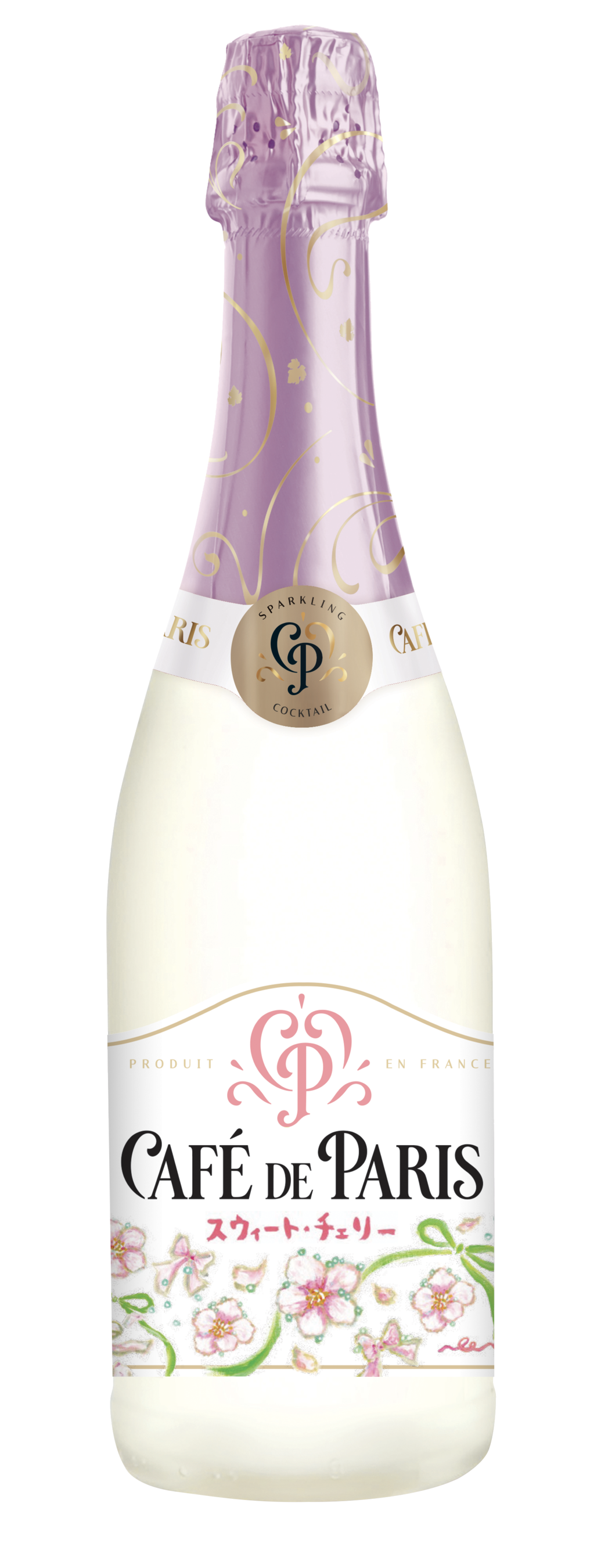 「カフェ・ド・パリ シトラス・ミックス」は、大切な仲間とのココロはじける瞬間にお愉しみいただける、大人の贅沢なひと時を華やかに演出する新フレーバーです。ラベルには、「のん」さんが “フルーツ×泡×Ribbonパーティー”をコンセプトに特別に描き下ろした、柑橘はじけるイラストが描かれています。「カフェ・ド・パリ スウィート・チェリー」は、淡いピンクの桜の花やリボンを散りばめた、春の訪れを感じさせるデザインです。