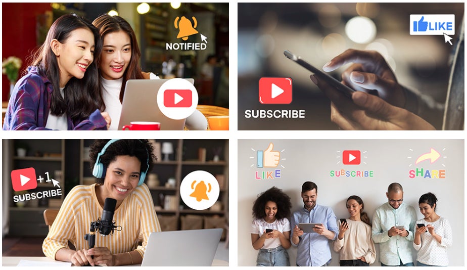 SNS の「いいね」や「チャンネル登録」などの20種類のステッカーがつまった素材パックです。
