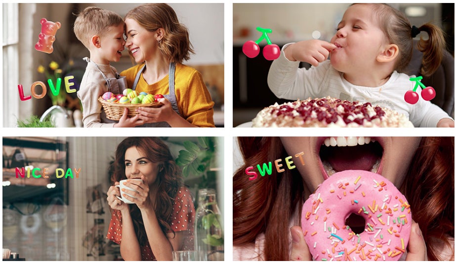色補正、ステッカー、動画テンプレート、効果音を追加