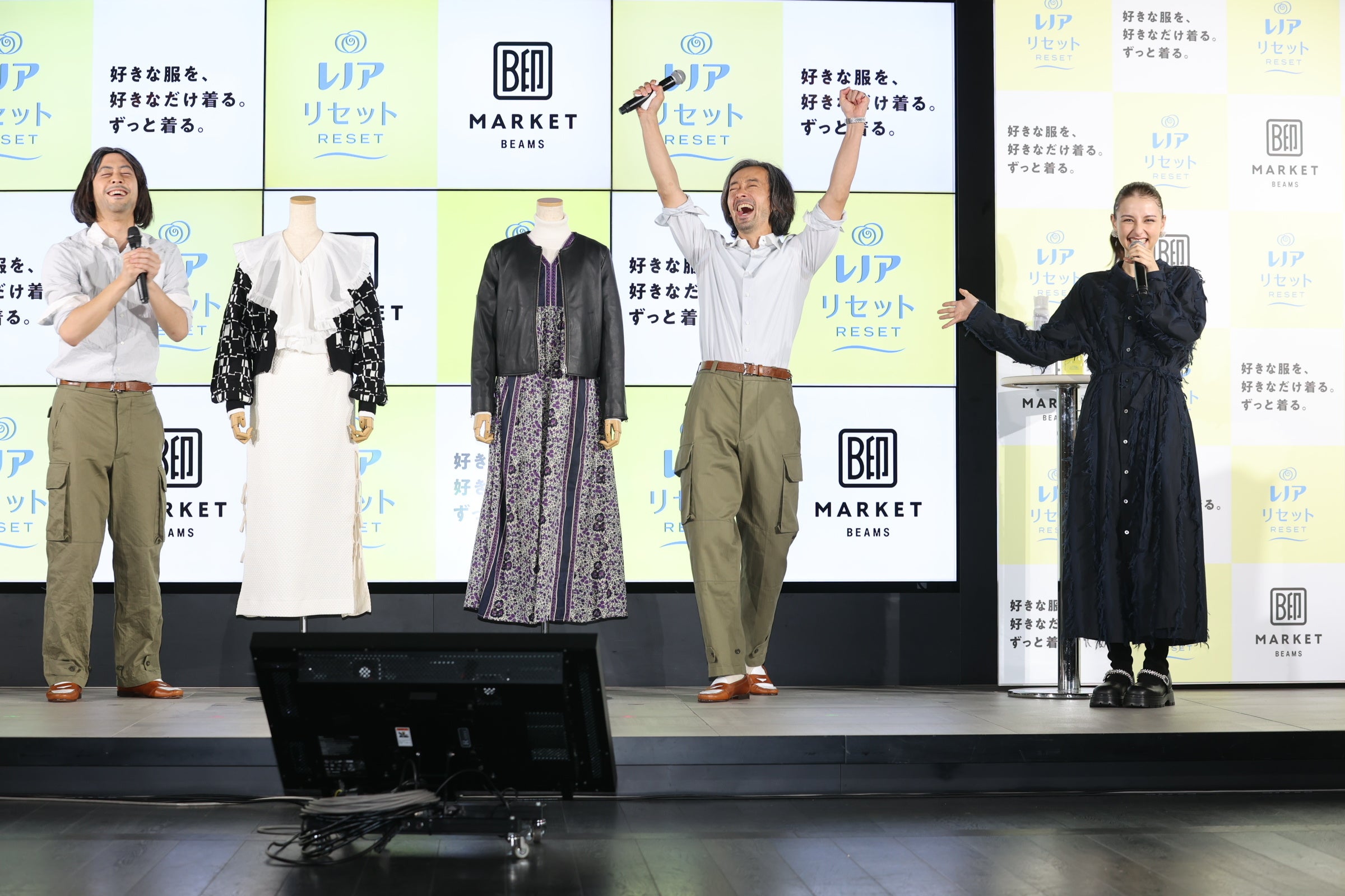 滝藤さん、都留さんのコーディネートのコメント役として登壇したビームスのHeg.さん、須藤和也さんはキャンペーン対象商品であるレノアリセットを使用した感想を司会から聞かれ、Heg.さんは「ニットのカーディガンをよく着ますが、洋服を畳む際にお腹に毛玉ができてしまうので困っていました。それがレノアリセットを使用することで全く気にならなくなりました。」とコメント。須藤さんは「シャツへの高い効果を感じました。毎日シャツを着る際はアイロンをかけていましたが、レノアリセットを使うとシワにならないので、毎朝助かっています。」とビームスタッフからも高い評価を頂きました。