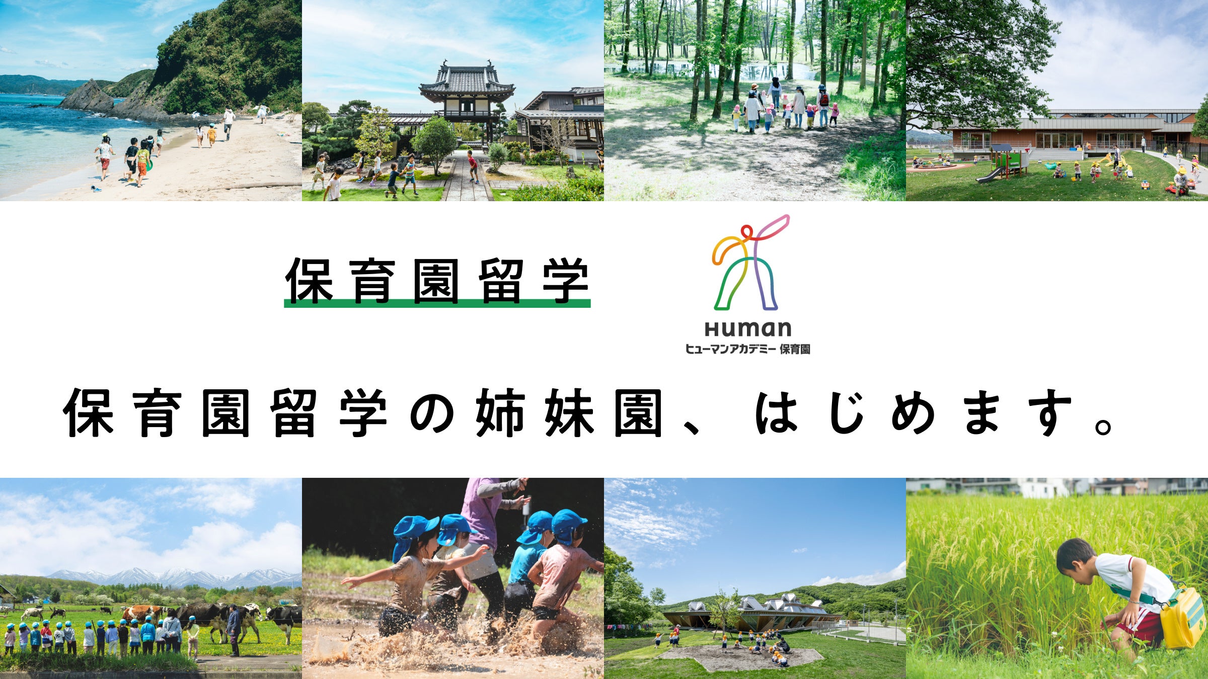 今回、保育園留学に共感いただけるヒューマンアカデミー株式会社の皆様との出会いに恵まれたことを大変嬉しく思っております。保育園留学は、地域創生・子育ての事業であると同時に、これからの社会のあり方を体現する思想です。「保育園留学の姉妹園制度」は都市部と地域の園の連携を強化し、地域を超えた連携保育への新たな一歩だと考えています。今後ますます保育園留学があたりまえになり、こども・家族・地域、それぞれの未来につながる社会を目指していきます。