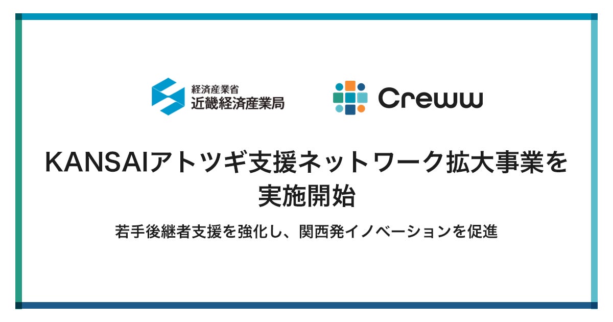 Creww株式会社(代表取締役:伊地知 天、以下「Creww(クルー)」)は、近畿経済産業局からの委託を受け、令和6年度『KANSAIアトツギ支援ネットワーク拡大事業』(以下、本事業)を2024年9月2日より実施開始します。