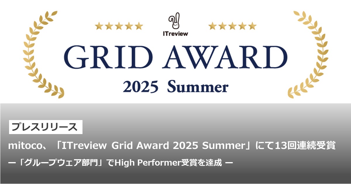 mitoco、「ITreview Grid Award 2025 Summer」にて13回連続受賞