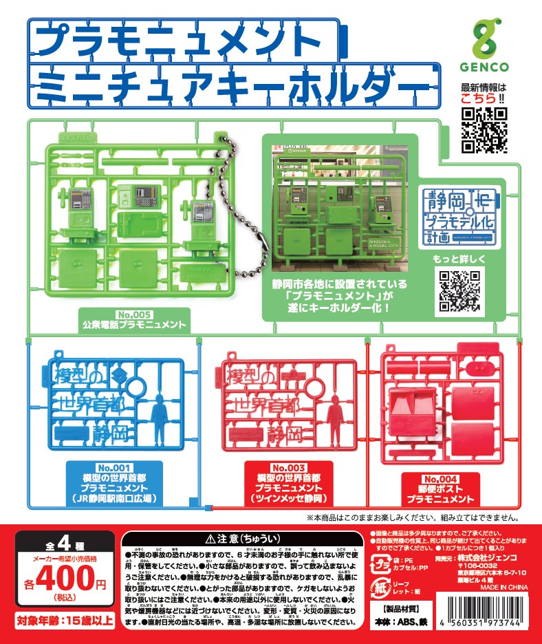 「静岡市プラモデル化計画」により市内各所に設置されている「プラモニュメント」を立体のまま縮小しキーホルダーのカプセルトイに。全国でのカプセルトイ販売店での販売に先立ち、静岡市で毎年開催されるプラモデル・ラジコン模型・鉄道模型等の模型玩具の製品見本市「静岡ホビーショー」にて、静岡市、静岡模型教材協同組合のご協力のもと、先行販売が決定いたしました。
